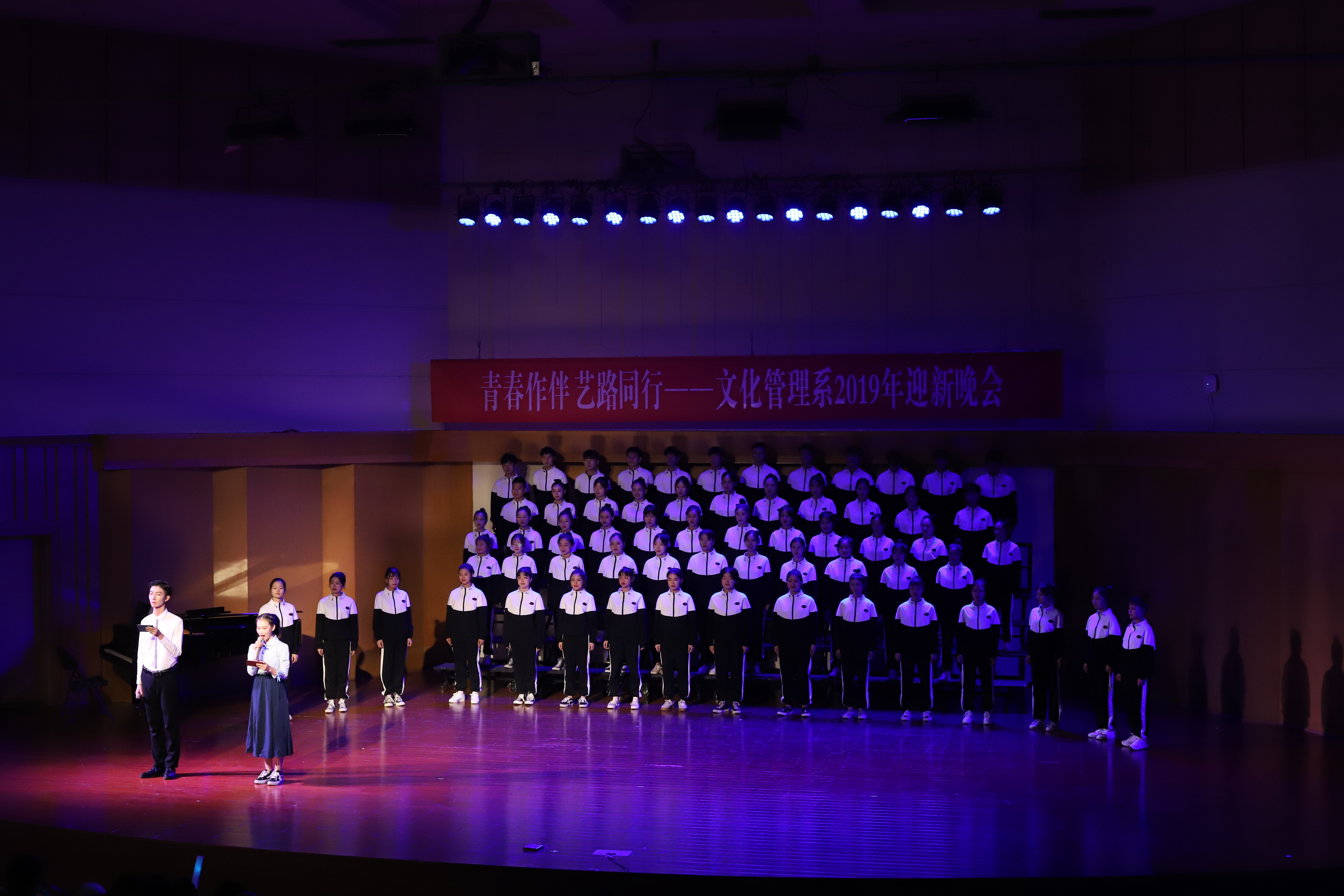 2019年11月1日晚,“青春作伴 艺路同行”文化管理系2019年迎新晚会在音乐厅举办。