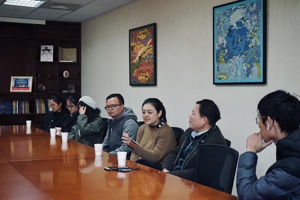 12月11日下午,文物修复与保护专业胡晶与江杰老师组织19名学生来到中国丝绸博物馆。 丝绸博物馆研究员,浙江艺术职业学院文管系文物修复与保护专业特聘专家汪自强老师亲自来带领大家参观。