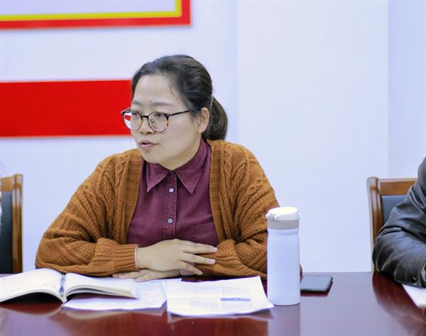 公共文化服务与管理教研室主任蒋曼曼结合《社会调查方法》课程,从课程教学目标、教学组织形式等环节,介绍了“课程思政”的教学设计。从培养学生基本专业技能、培养学生文明和服务意识、培养学生吃苦耐劳的精神、培养学生爱岗敬业等方面融入“课程思政"德育元素 。文物修复与保护教研室教师潘文娟对照了习总书记在讲话中指出的在青少年中开展思政教育的重要性,将培养学生文化自信、团队协作意识、提高学生主观能动性、提升文化软实力等方面融入所教授的《中国通史》和《中外博物馆学》课程中。系教学秘书董露杰兼任学院艺拓课《金庸小说赏析》的教学工作,她从培养学生的爱国主义情操,提升学生文化素养入手,对课程进行了德育元素的提炼。文化管理系全体党员教师紧紧围绕坚持正确的政治方向和政治立场,培育和践行社会主义核心价值观,进行教学设计。把引导学生坚定理想信念,勇于担当作为放在教书育人工作的首要位置。