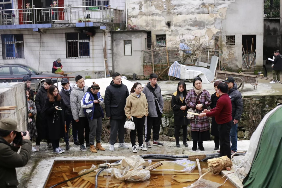 授牌仪式后,文管系师生参观了富阳竹纸制作车间,朱中华为师生详细讲解了竹纸制作的流程及竹纸的特点,部分同学还亲身体验了制作环节。