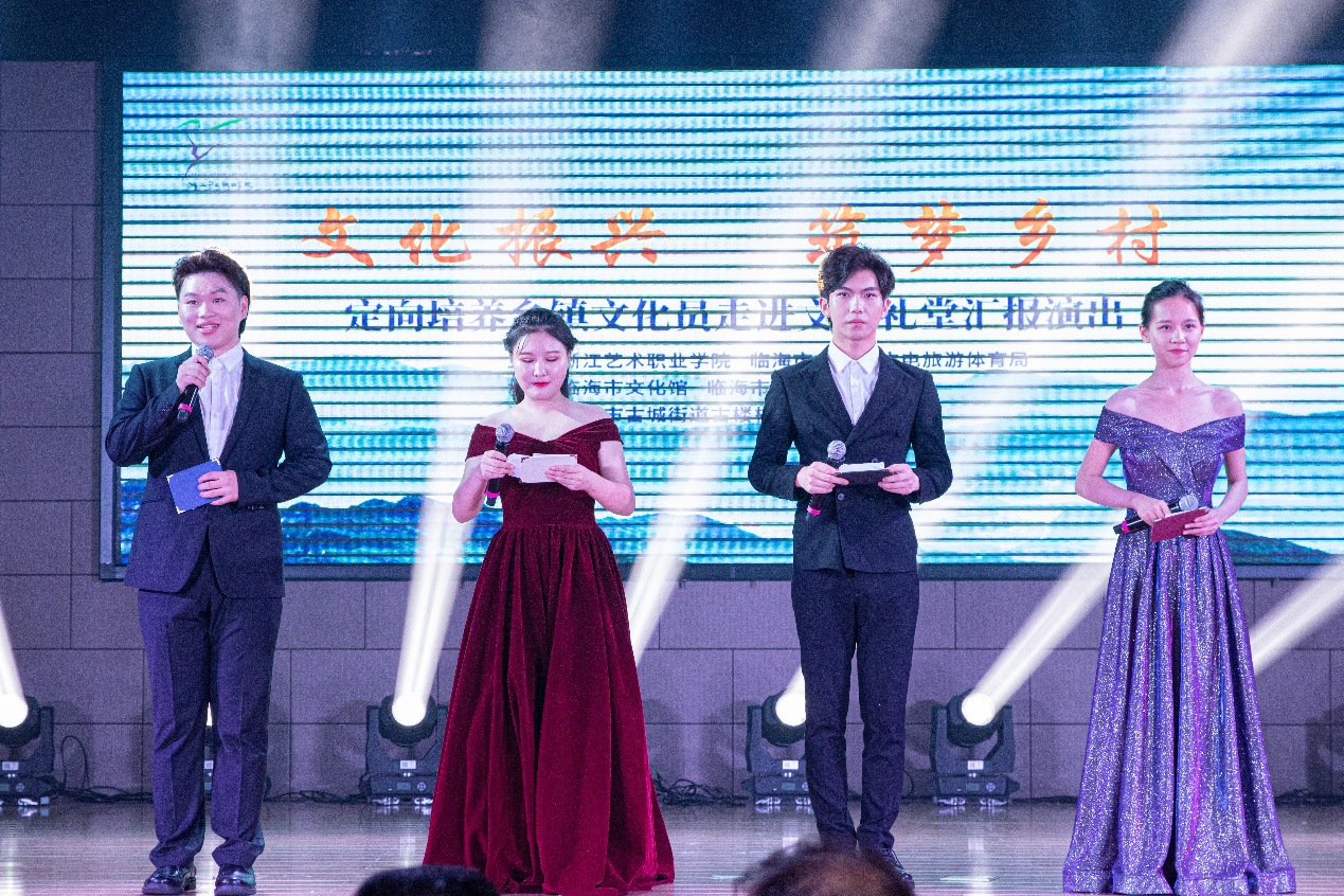 7月9日晚,“文化振兴 筑梦乡村”——定向培养乡镇文化员走进文化礼堂汇报演出于台州临海市古城街道古楼村文化礼堂举行。本场汇报演出是由浙江艺术职业学院、临海市文化和广电旅游体育局主办,临海市文化馆、临海市古城街道文化站承办,临海市文化和广电旅游体育局副局长冯海燕带领临海市文化馆一行人莅临观看指导,此外,前来观看演出的还有古城街道的百姓们。