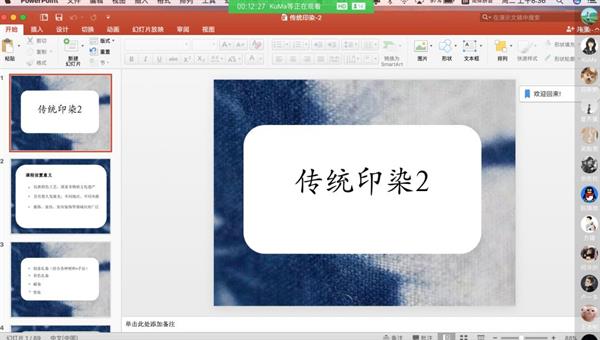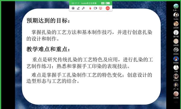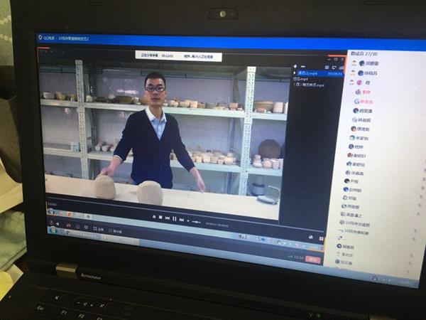 民族传统技艺专业核心课程有青瓷烧造技艺、石雕技艺、水印木刻技艺、汉代器艺、传统印染等。因课程大多需要操作实践,教研室老师们就采用理论联系实践,PPT教学与线下操作直播同步进行的方式进行线上教学,让学生能融会贯通,一目了然。青瓷烧制技艺课程教师通过PPT讲解陶瓷基础——材料及成型方式,通过视频演示器皿制作及烧成(弦纹炉的制作及烧成)让学生更直观地了解青瓷烧制的整个过程。