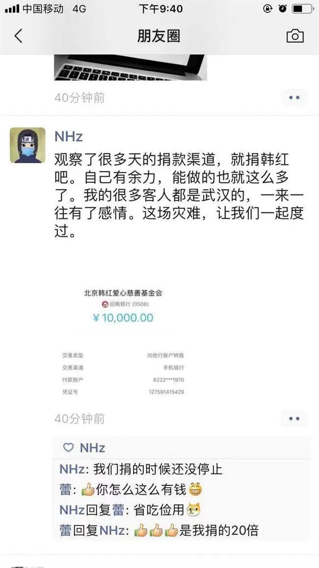 这段时间,周浩楠的心情就像一张网上流行的图片,天天在谷底和峰顶忽上忽下。他觉得自己一定要为这次防疫抗疫做点什么。“我刚开始做珠宝设计时,有很多来自武汉的朋友,还有相当一部分客户是湖北的,都非常支持我,给我提建议,热情购买,我们都成了朋友。天天在网上看到铺天盖地的疫情报道,我想帮助他们。经过几天观察,选择了韩红慈善基金会。”那天他发了一个朋友圈说,这场灾难,让我们一起度过。