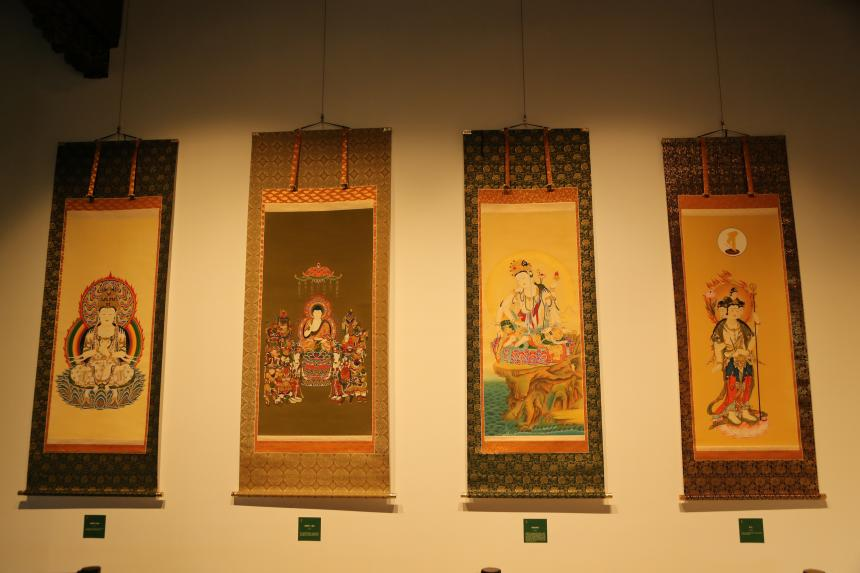 周衍桂的木板彩画2幅、李如民的玻璃画2幅、王志峰的麦秆画2幅,四明佛画2幅。