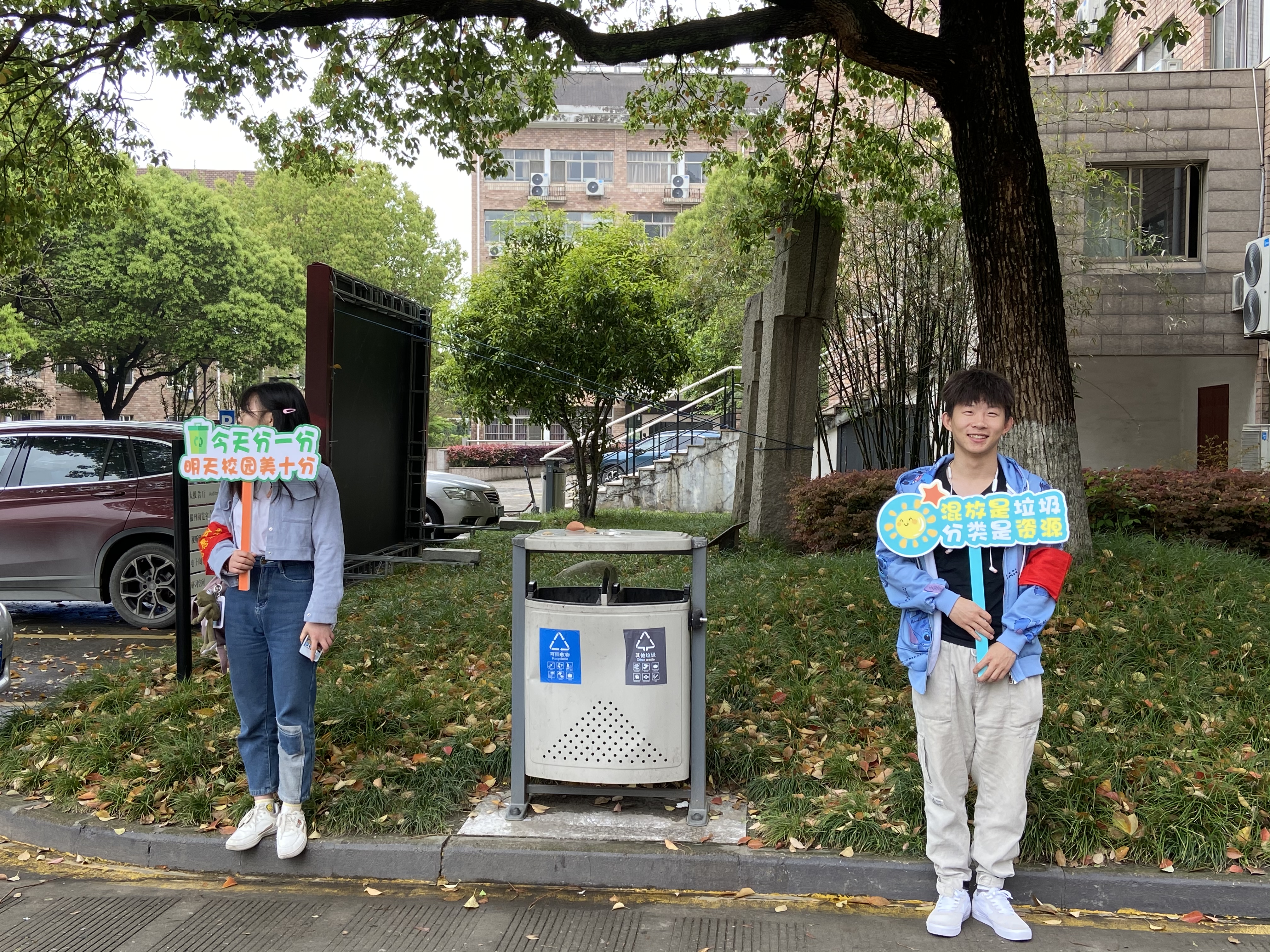 同时,系部还开展了垃圾分类劝导活动,招募志愿者每天在公寓和校内对全校师生进行分类劝导。