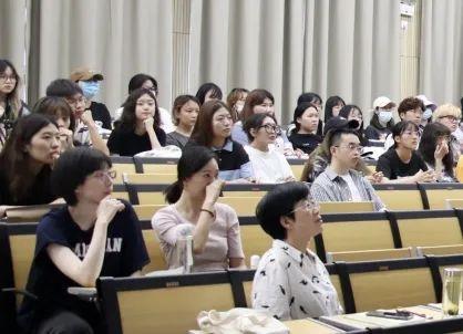 鲍诚翔实践经验丰富,言谈风趣,师生们都认真聆听,时不时低头记录。
