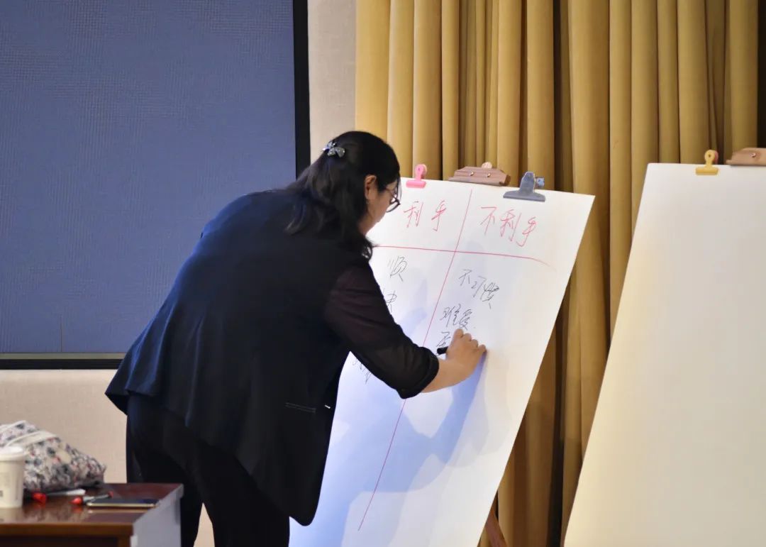 二是天性与职业偏好的关系。张静用同学们上一阶段探索出来的结果具体分析了哪些天性适合从事哪些职业,接着同学们分小组讨论深入挖掘了性格类型给自己带来的优势,同时不断补足自己的缺点。