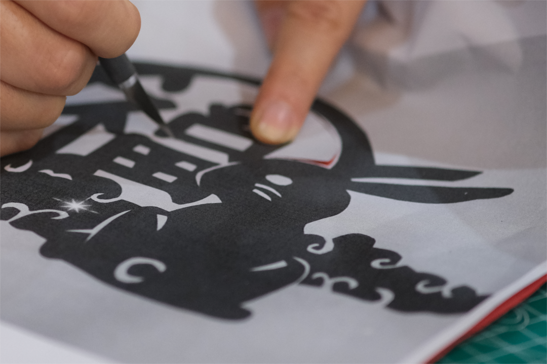 剪纸教学活动伊始,手工艺师生讲解了剪纸工具、制作过程与注意事项。以党的二十大和新年生肖兔为主题模板,学员们聚精会神,耐心把握好刻刀力度,仔细刻画自己的作品,在其中体悟剪纸的艺术魅力和乐趣。