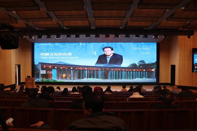 印刷文化与中国书法的关系密切同时也与版本历史紧密关联。陈老师以通俗易懂、喜闻乐见的方式讲述印刷术的历史,分别从隋唐、五代、两宋时间节点为切入口对印刷术发明之初的书法环境进行追溯,并提出印刷术自唐初萌,两宋大盛;科技发展决定文化史、艺术史发展的方向与节奏;宋代印刷术对字体书体的确立、构画形成压倒性技术优势;印刷术正楷字的"垄断"与覆盖孕育产生真正的创作意识与实践等原创性观点。其言论赢得掌声雷吗,师生们也表示了对陈老师深深的敬佩,认为不虚此行,受益良多。