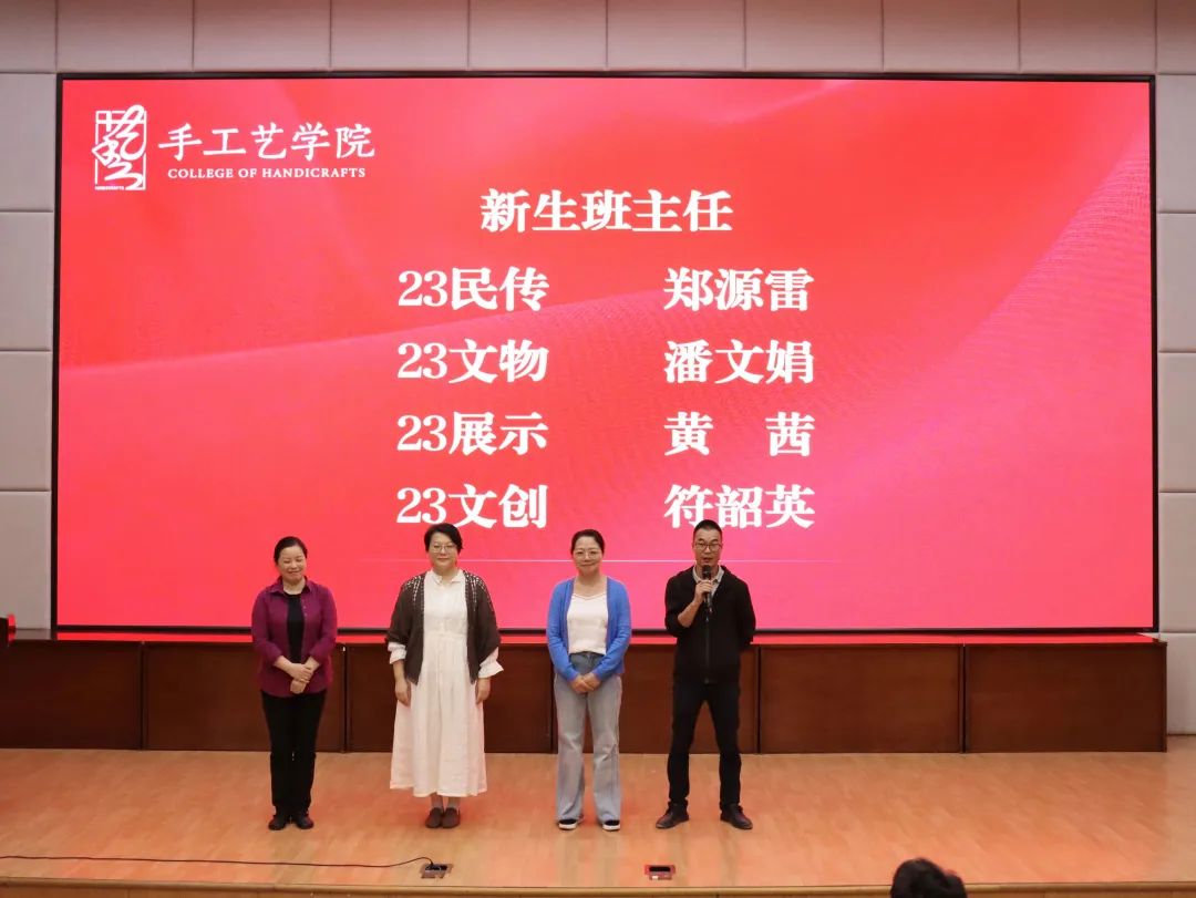 党委委员、副院长沈军甫,手工艺学院党总支书记钟黎,党总支副书记陈琳,组织员钱杏芬,辅导员胡墨智丽、方雯静,各新生班主任、班助和2023级全体新生出席本次大会。