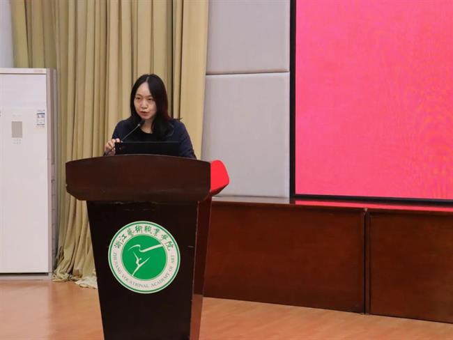 钱杏芬介绍了发展学生党员的具体流程,并通过优秀党员校友的事例,鼓励大家向优秀党员学习,争当负责任、有担当的手艺人,在新征程上传承星火、赓续血脉,让青春在不懈奋斗中绽放绚丽之花。