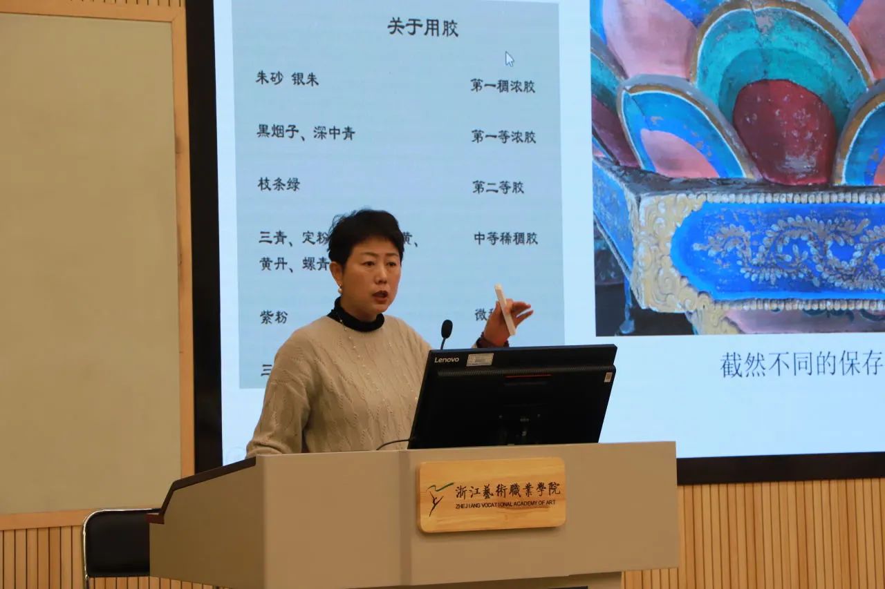 为了解古建筑壁画彩塑的保护与修复,拓宽对文物保护的视野和认知。12月4日上午,手工艺学院开展了“求真守艺”大讲堂第33讲专题讲座活动,特邀中国文化遗产研究院研究馆员,文博教育科技培训学院教务长,全国文物保护行业职业教育教学指导委员会副秘书长张晓彤带来一场题为《古建筑壁画彩塑保护修复前期研究教学与实践》的专题讲座,讲座由文物修复与保护教研室主任潘文娟主持。