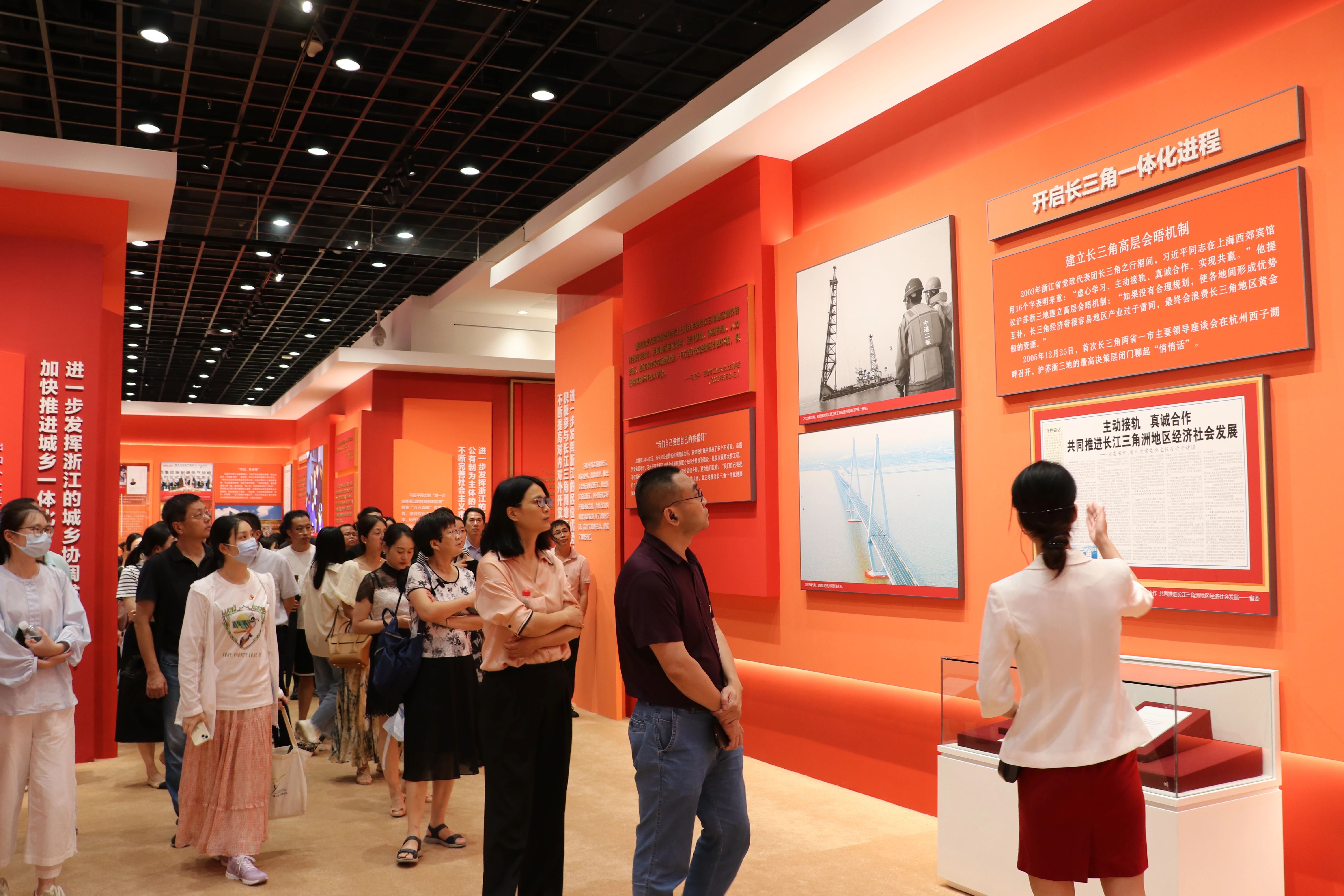 手工艺学院民族传统技艺专业教师胡锦霞:大气的红色,就如观展的心情,激动不已。“八八战略”这一省域发展全面规划和顶层设计,指引浙江率先开启了现代化先行探索。20年生动实践,为我们提供了深刻领悟,“两个确立”决定性意义的有力例证,充分证明了历史、时代、实践的必然性。