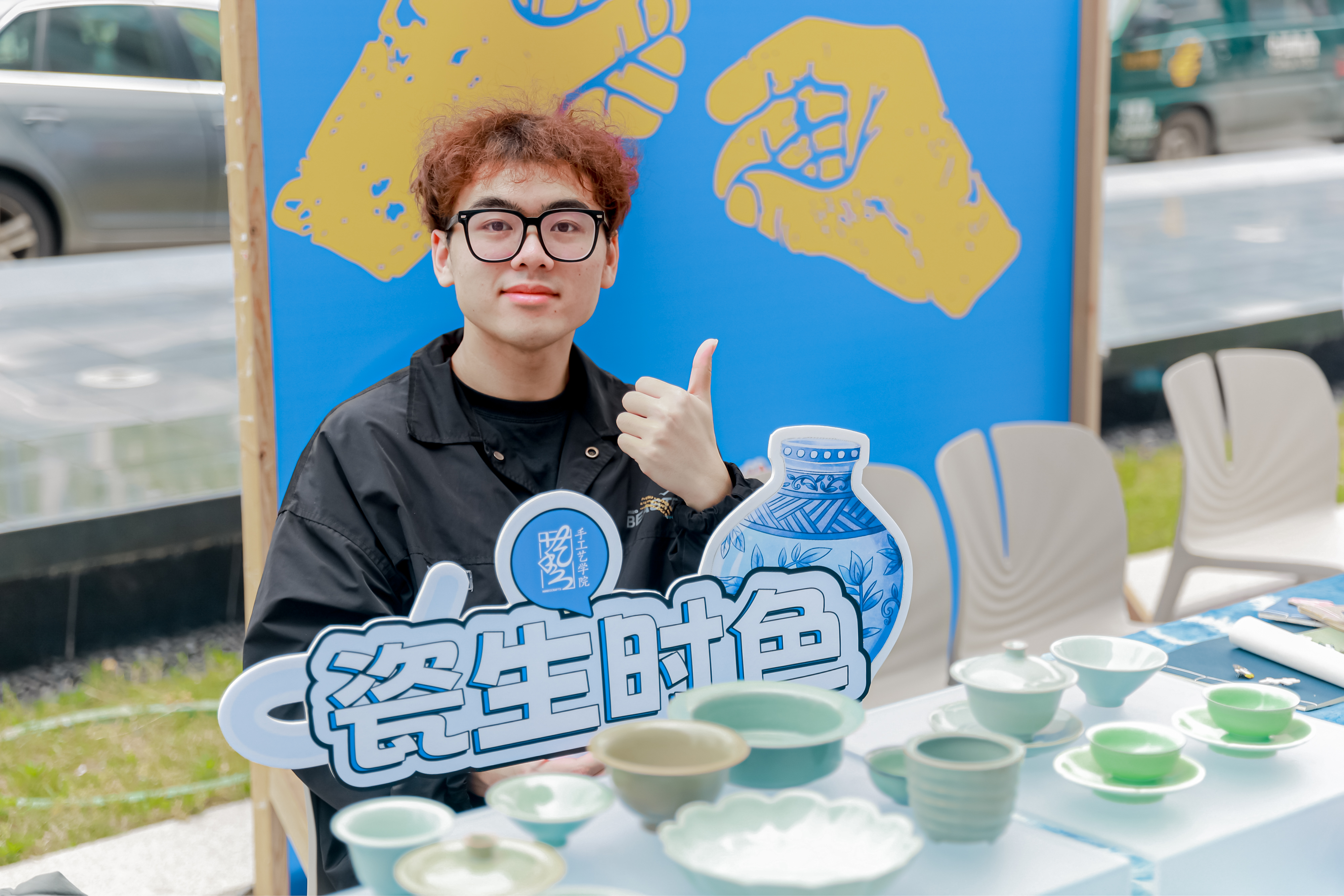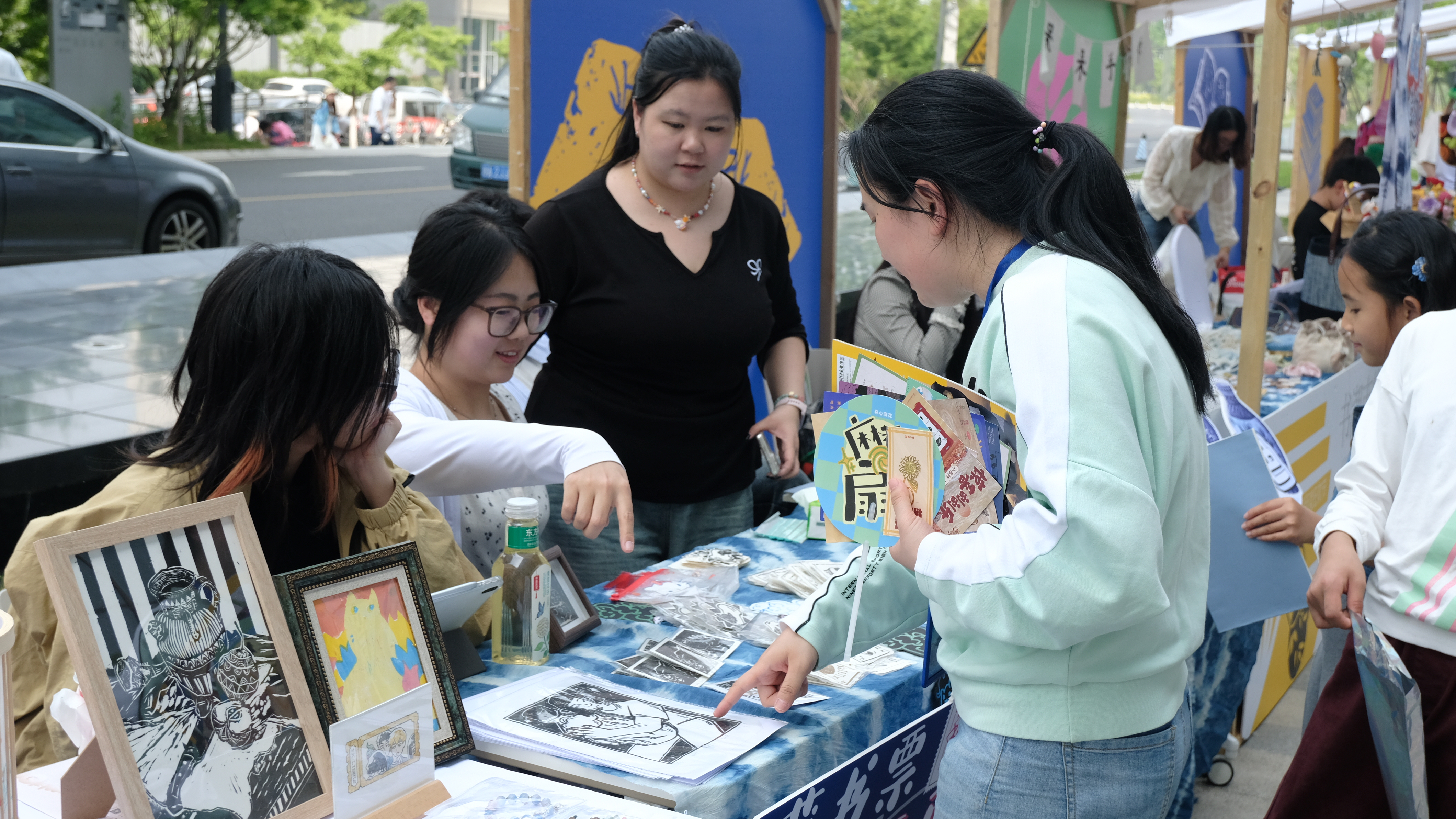 在浙艺手工艺创意市集上,扎染手作、陶瓷胸针、青瓷茶具、油印藏书票、迷你书籍,琳琅满目的作品引来人们驻足欣赏。将创意融进课程、让作品走出校门,手艺学子此行收获满满。