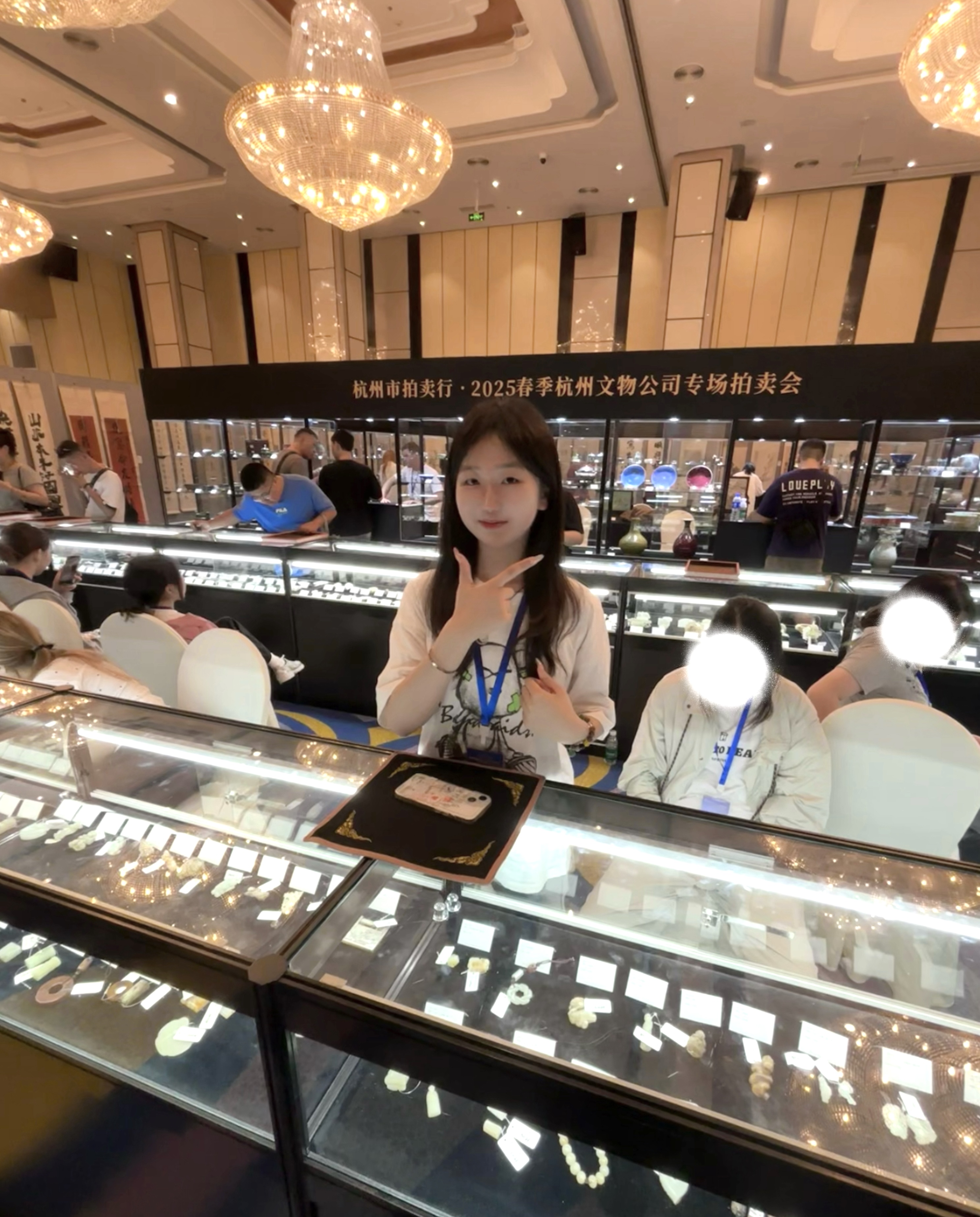 7月25日下午至26日,拍卖阶段正式开启,槌声落处,活动迎来高潮。团队成员各守其岗、全力投入:台前记录员紧盯进程,笔屏同步精准记录拍品品号与成交价,确保数据无误;台下同学守着电脑,随拍卖牌起落、喊价声起伏,快速调整PPT价格动态,实时呈现竞价进度;预展区仍有成员坚守,为客人近距离展示待拍物品、讲解工艺与历史;后台成员则专注文件核对与数据校验,以前后联动保障竞价平稳、成交规范。