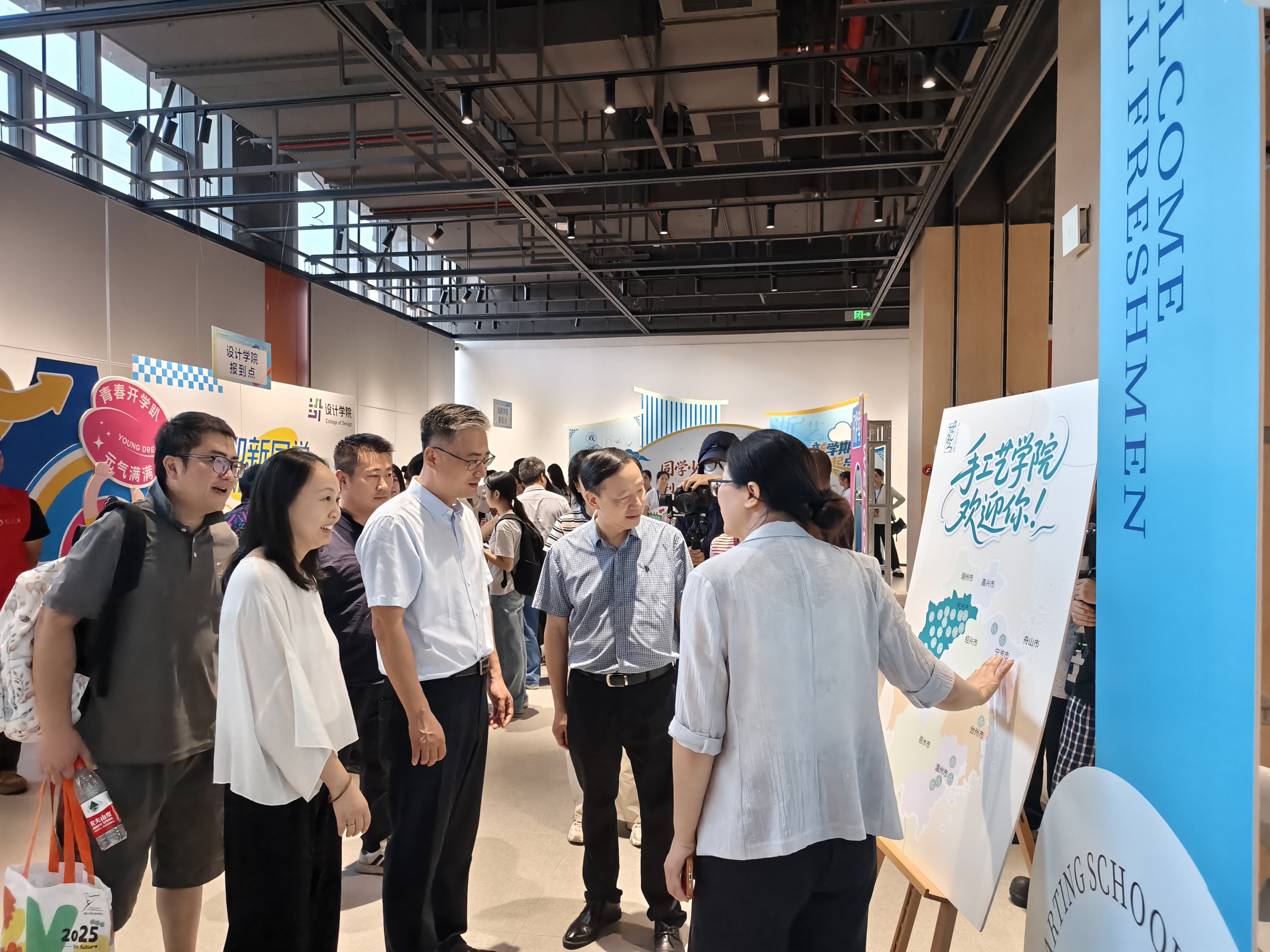 校领导与职能部门负责人深入报到点位,了解我院新生报到情况,看望并慰问参与迎新工作的师生团队。领导们与新生亲切交流,鼓励大家在手工艺学院深耕技能、逐梦前行。