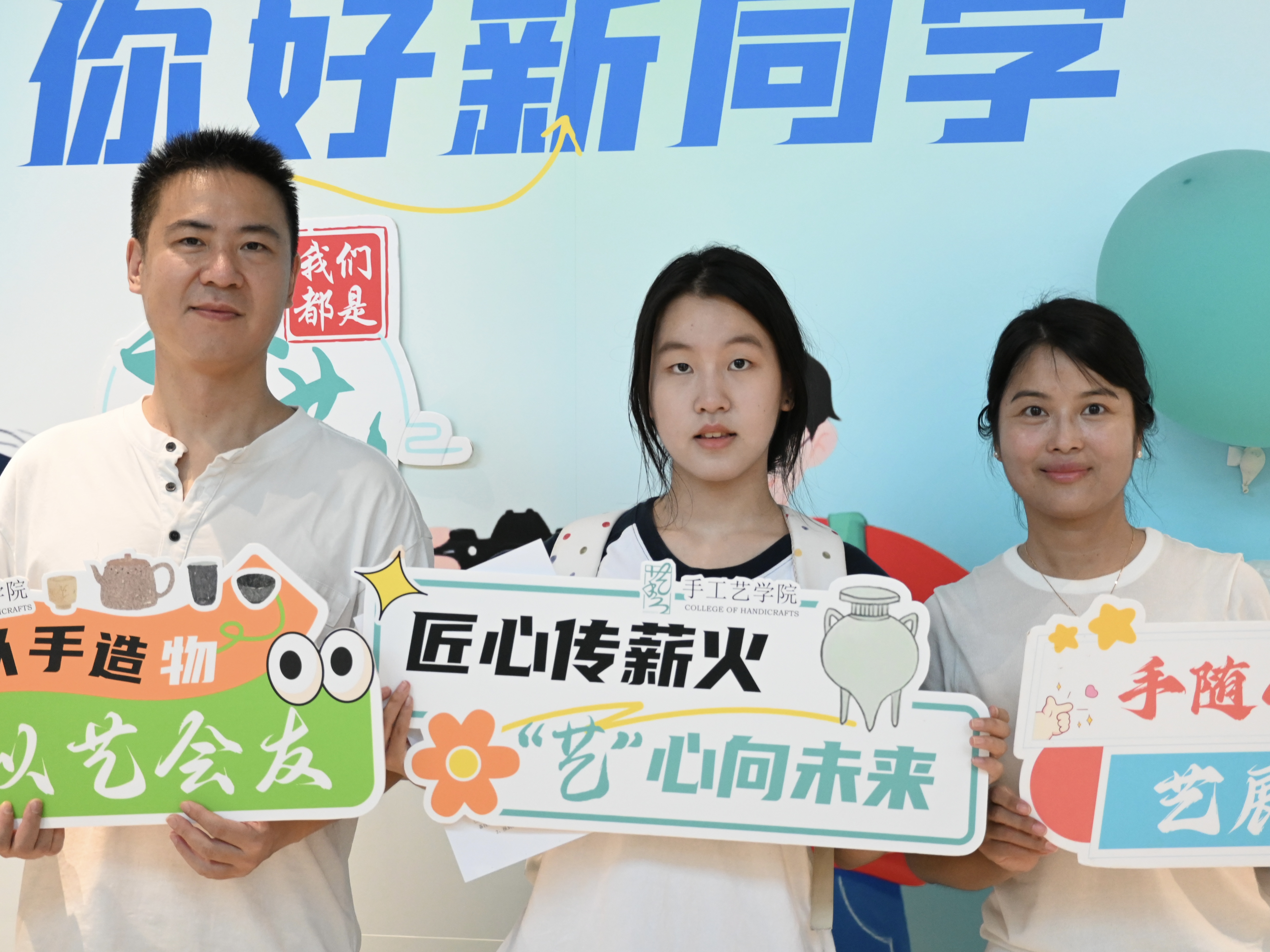 手工艺学院团总支学生会迎新工作组,积极组织“艺小匠”志愿者们,以饱满的热情迎接每位新生,协助完成报到流程。特色喷绘、手持牌和互动kt板,拉满迎新氛围。“我是手艺人”的迎新手作大礼包,更是将“巧艺传承,匠心筑梦”的初心传递,让新生刚进校园就感受到家的温暖。