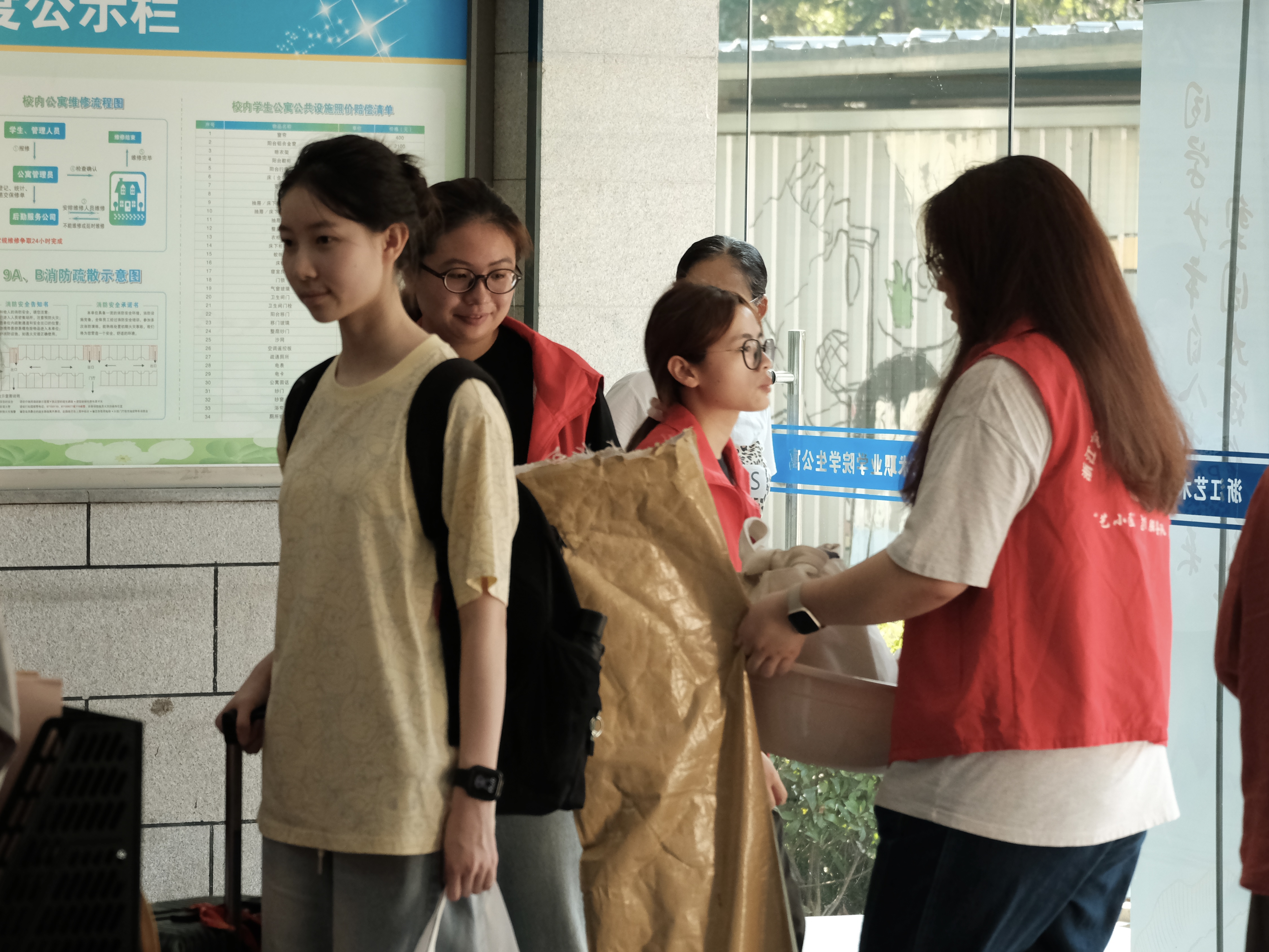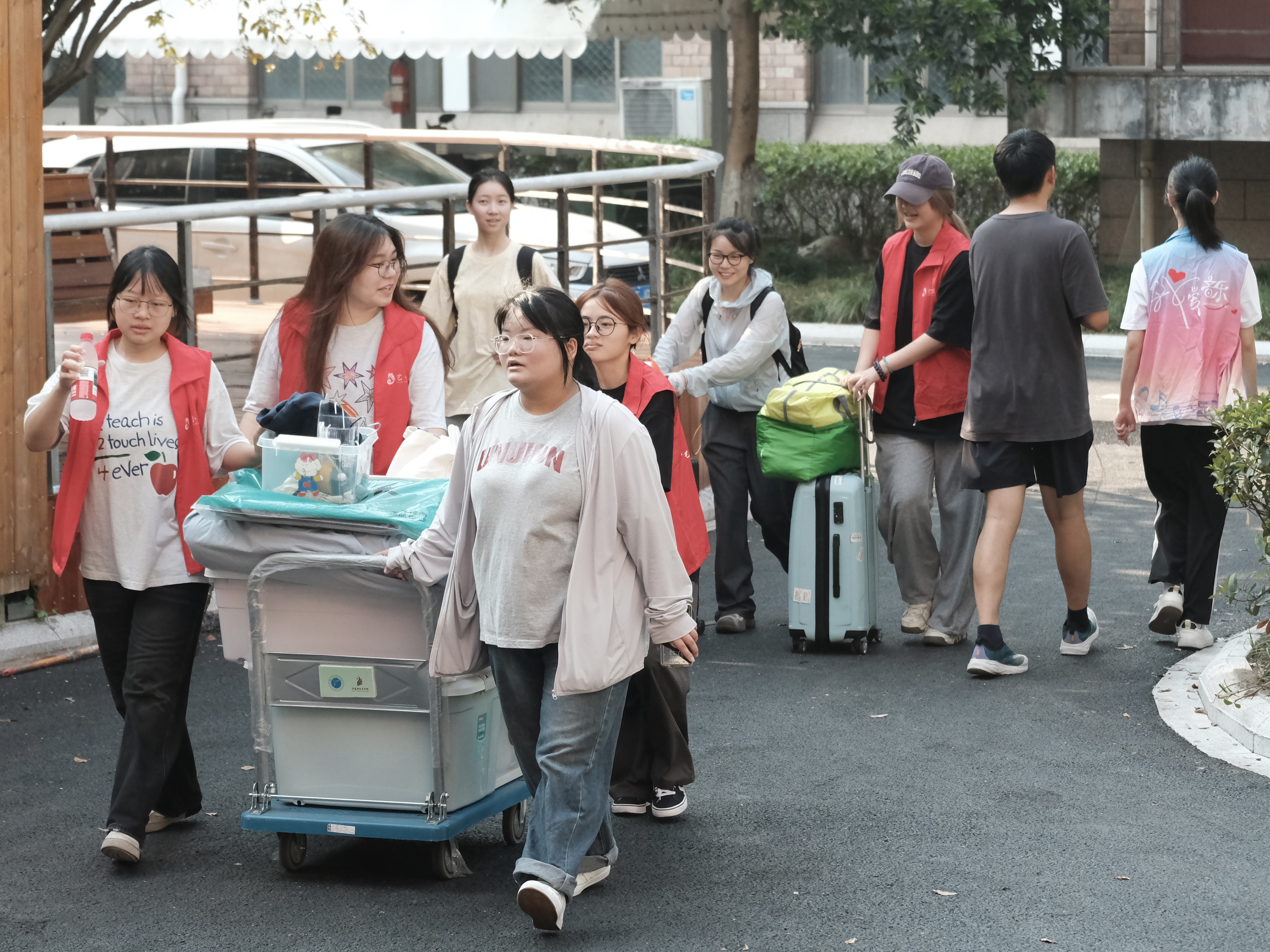当天,“艺小匠”们主动上前接过新生手中的行李,引导校园路线,助力新生顺利抵达宿舍。新生与家长默契配合,在寝室内有条不紊地整理床铺、收纳物品,迅速将新“小家”布置得整洁温馨。志愿者们的贴心服务赢得了新生及家长的一致好评。