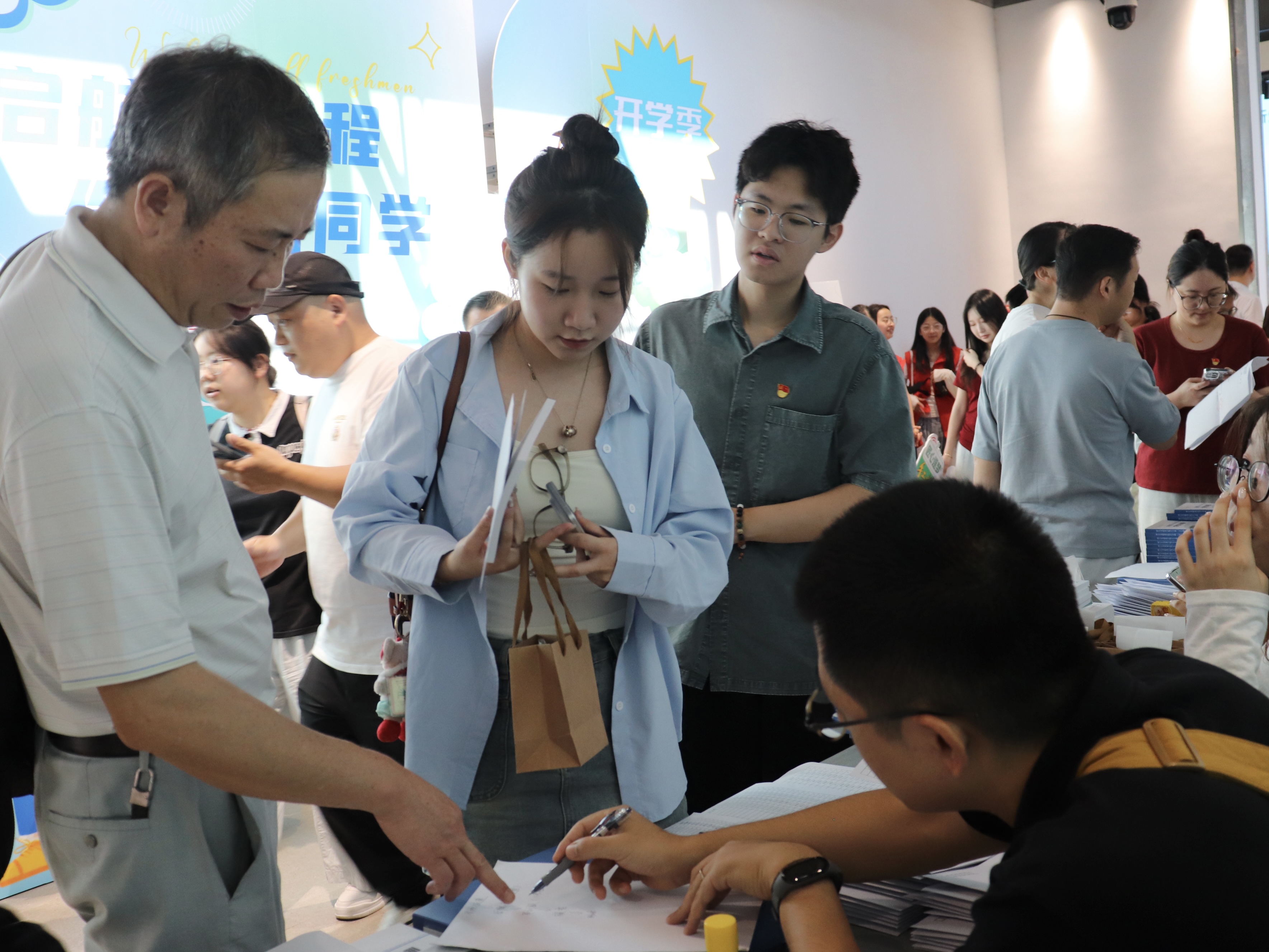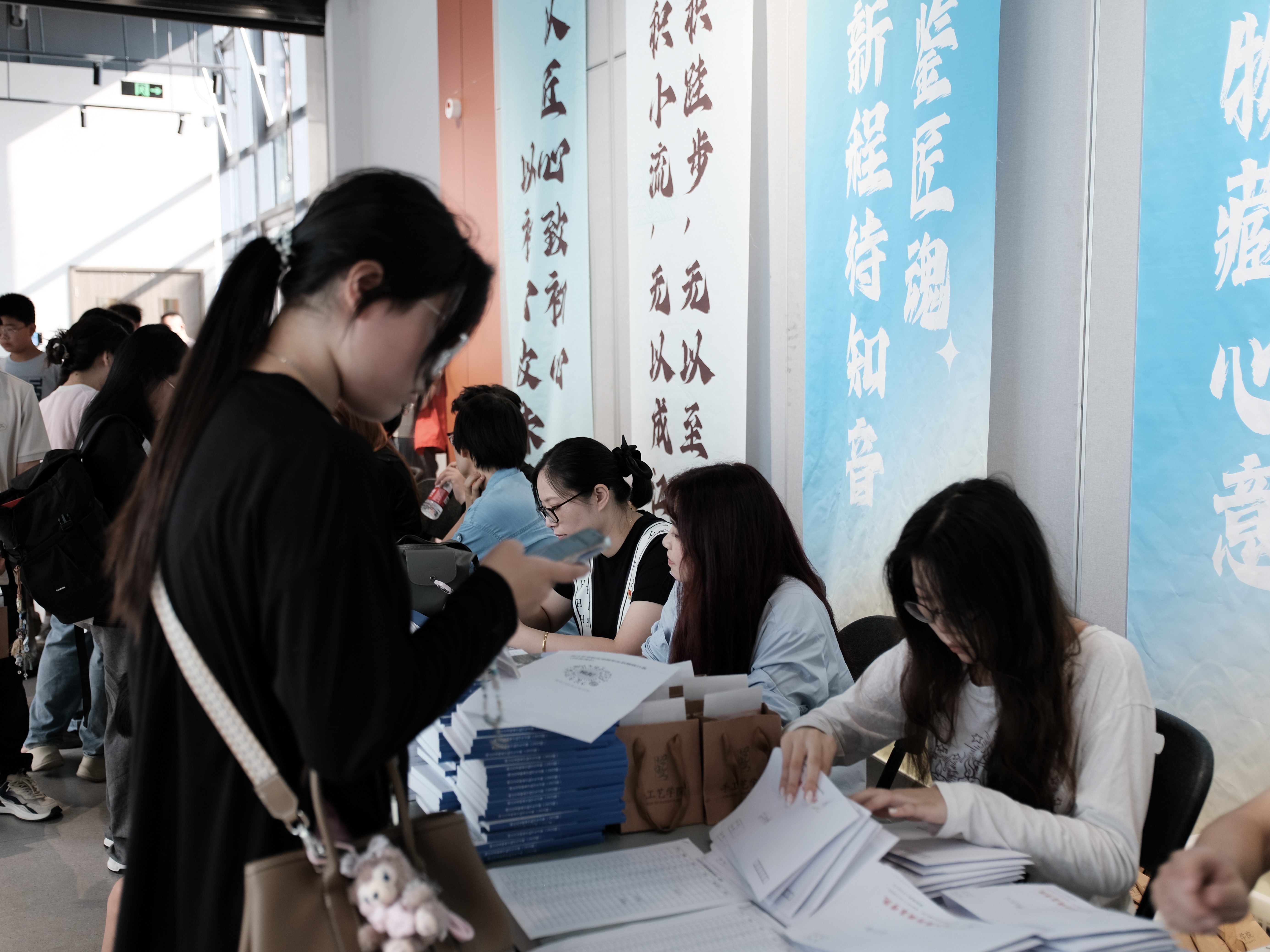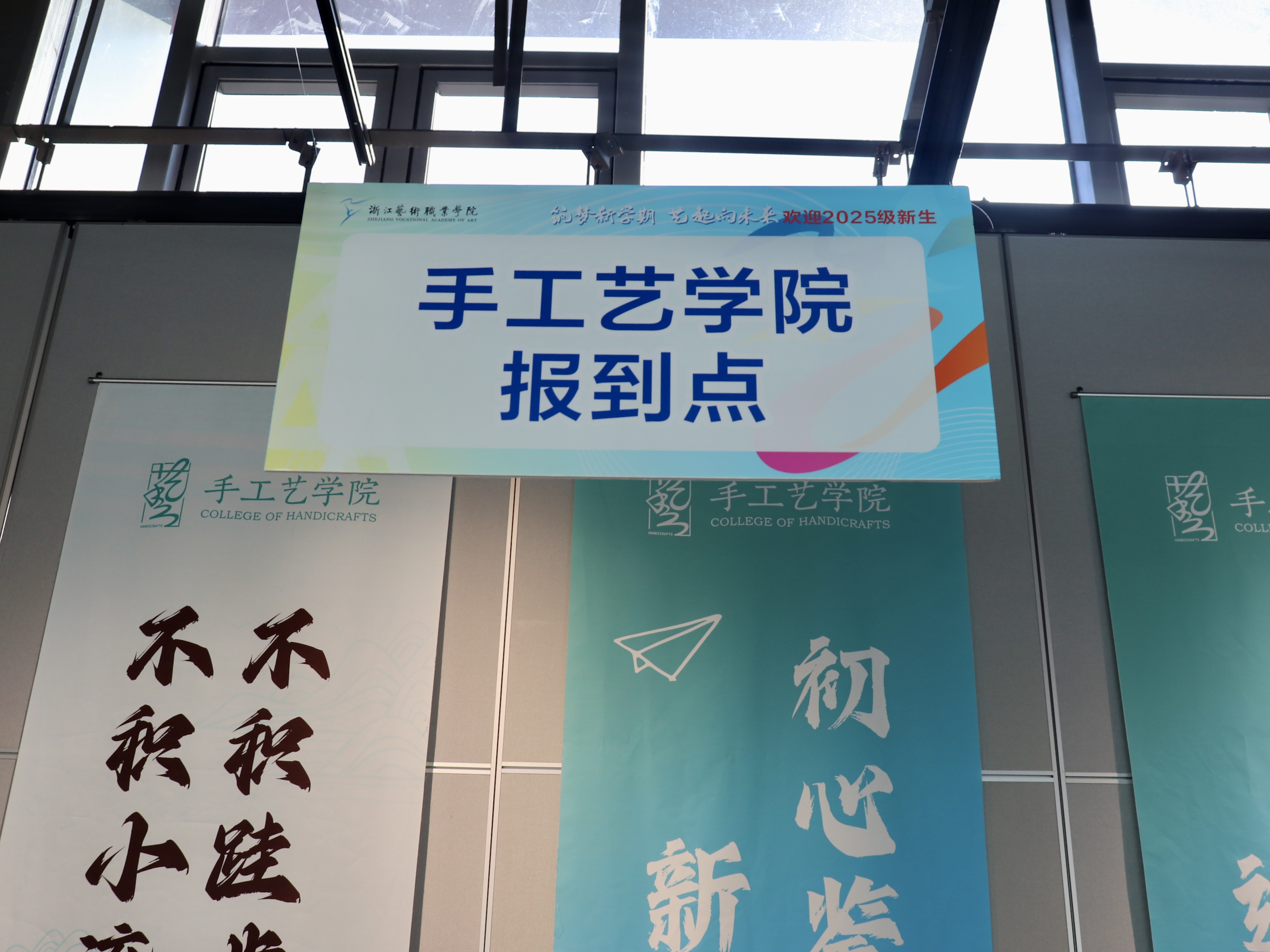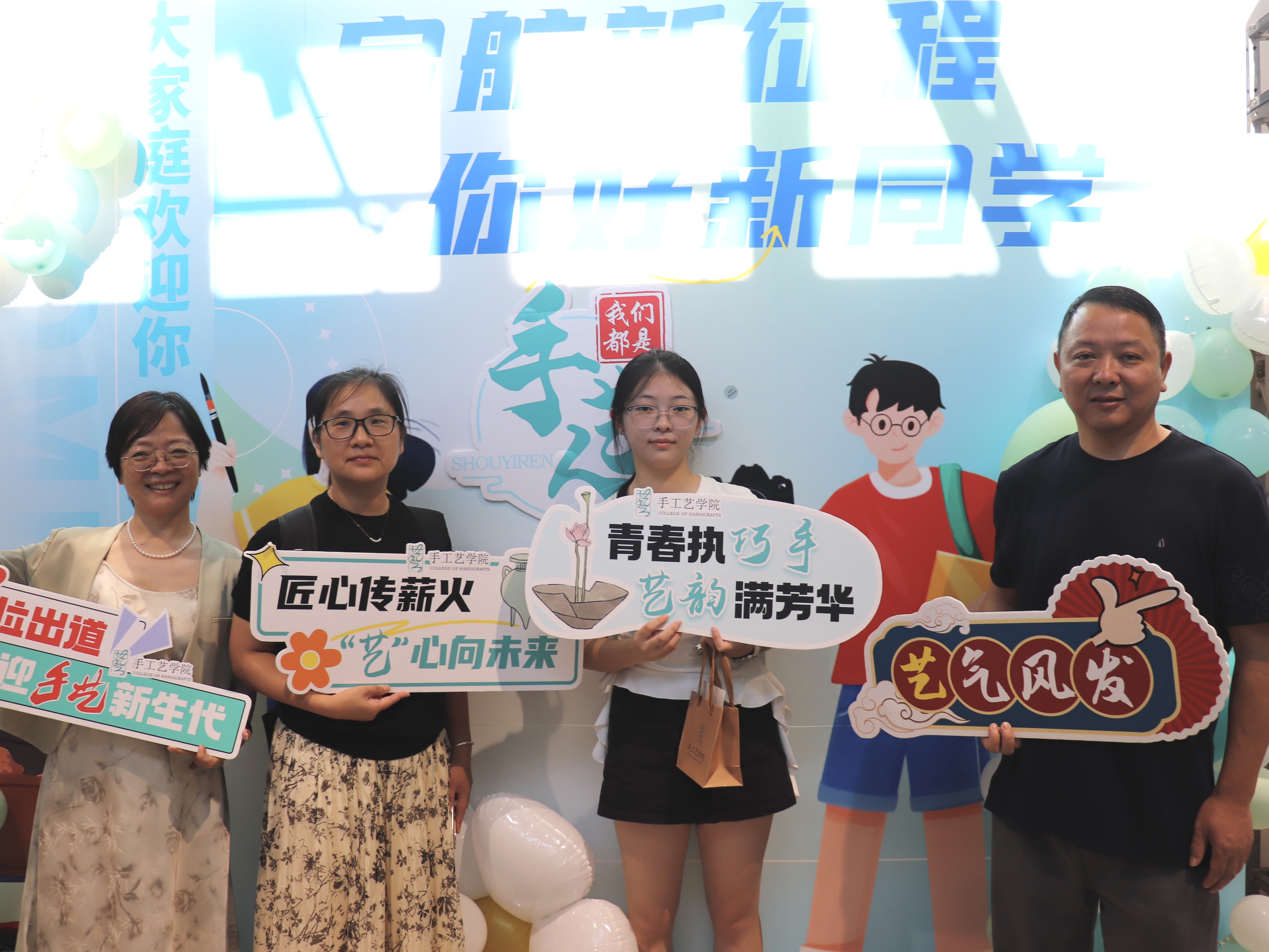 一幅幅书法墙,写下“传承与创新”;一张张喷绘,记录热烈的迎新瞬间;一份份“我是手艺人”的手工定制物料,成为与新生的第一次见面礼。