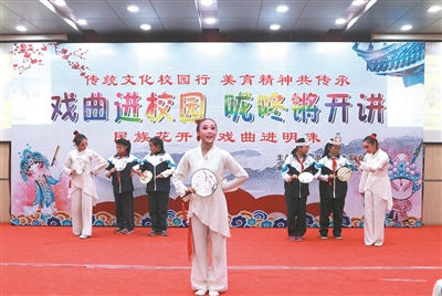 日前,浙江艺术职业学院“戏曲进校园”活动陆续走进杭州长江实验小学、绍兴市上虞区百官重华小学、舟山市普陀小学等学校,让中小学生近距离感受京剧、越剧、绍剧等传统戏曲之美。图为该校2014级越剧班学生在杭州市明珠实验学校教戏曲团扇舞。