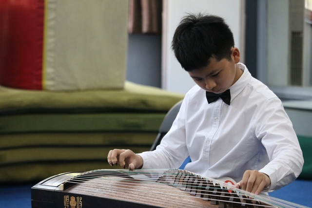 音乐表演(器乐)考场,各类乐器琳琅满目,古筝、二胡、琵琶、笛子、柳琴……乐声有时如淌过草丛的小溪,有时如石缝漏下的滴泉,有时如飞瀑落下深潭,考官们在休息时候私下点评:"这批孩子基础都不错。"
