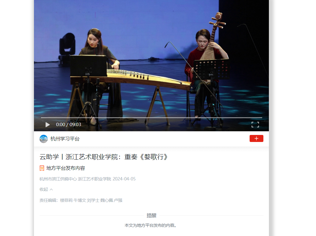 学习强国杭州平台:云助学丨浙江艺术职业学院:重奏《婺歌行》
