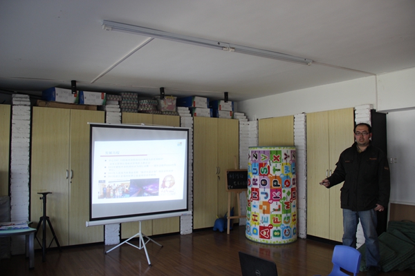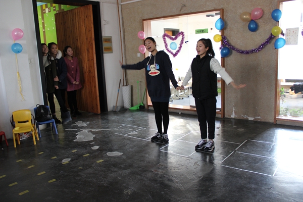 康复中心墙上挂着一个太阳标志、一颗爱心、一双手和一株小草,简洁明了地诠释了阳光、爱心、帮助和成长。康复中心工作人员简单介绍了这群特殊的小朋友:“他们是一群患有自闭症的儿童,在社会生存中需要更多的理解和关爱。我们所倡导的,不是为了消灭,而是为了共存。”同学们的热情感染了小朋友,在为他们表演的时候他们也跟着音乐左右摇摆,乐此不疲地跟着跳舞。最后,当同学们将精心准备的图画、千纸鹤、食物送给他们时,他们的脸上洋溢出幸福笑容。在即将离开时,听到他们小声说:“姐姐,谢谢你!”、“我舍不得你走......”的话语,令现场同学留下感动的泪水。