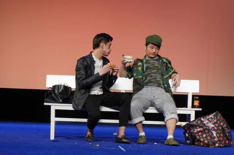 舞台的主角们是12(五年一贯制)演艺班、13和14演艺班的同学们,依然是由全体学生自编自导自演、自行完成全部舞台调度操作,所有专业老师成了现场观看、打分和点评的嘉宾,还有全场助阵喝彩的学生观众,演出的精彩可谓一浪接着一浪。