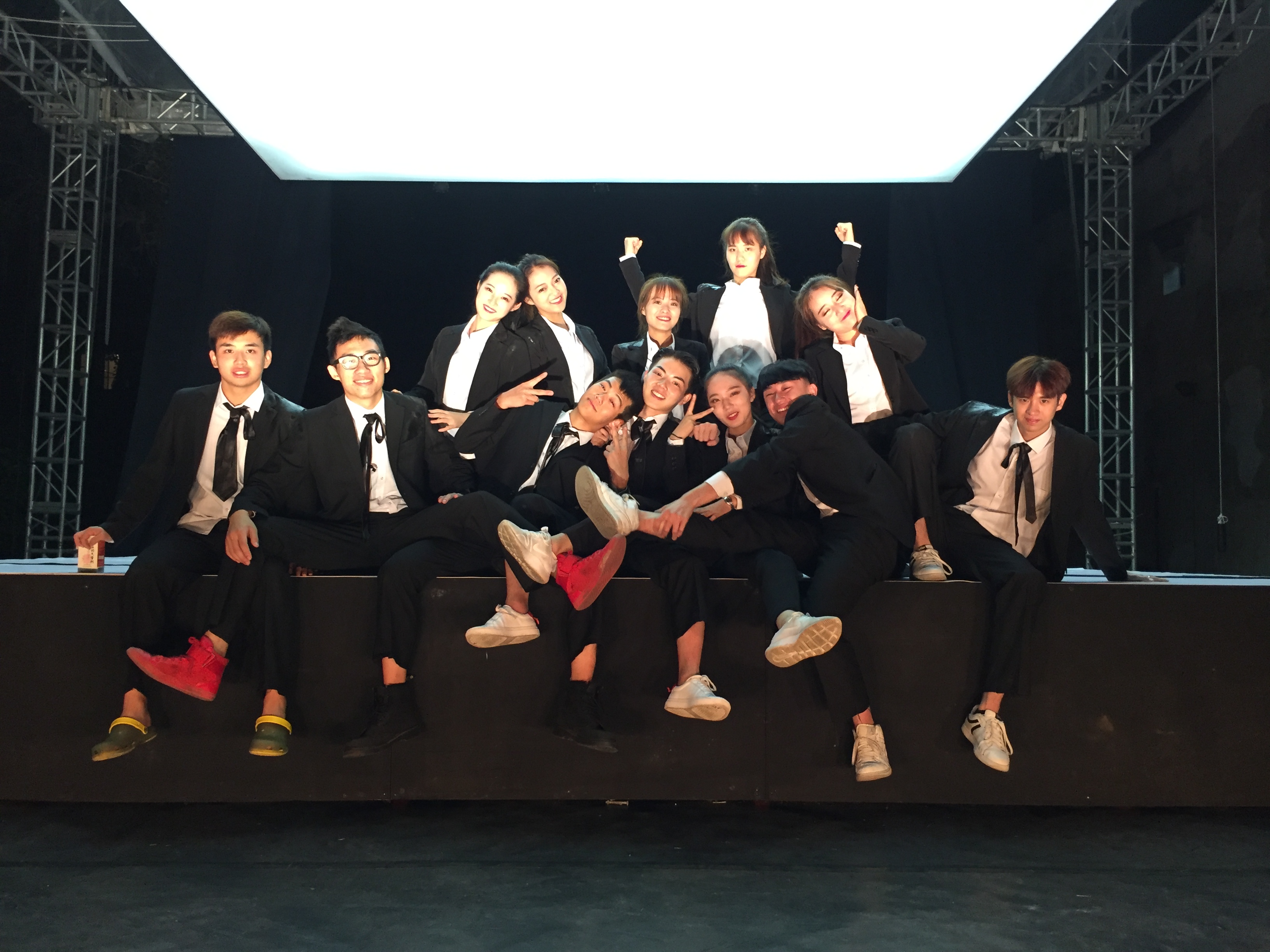 日月广场舞台演出地点在日月广场,由于第二天就是首演,于是在到达乌镇的当天下午,师生们便投入了紧张的排练。为了将自己最好的一面呈现给观众,大家保持了高昂的热情,使得联排一遍比一遍出色。演出前,所有演员就位,一起握手,共同加油。从走上台的那一刻起,同学们尽情享受着舞台,并以出色表现获得了剧目组的好评和观众的热烈掌声,同学们觉得,此前所有的辛苦和努力都是值得的。首演成功,令同学们倍感激动和喜悦。回到休息室后,首演庆功宴早已布置好。更让同学们振奋的是,赖声川导演也特地赶来,跟剧组成员一起合影、举杯,同贺首演成功。赖声川导演对首演成功表示祝贺,《李尔王》的导演窦辉向赖导介绍了剧组所有成员,对浙江艺术职业学院表演艺术专业加盟这次演出表示感谢,对同学们在排练中的敬业态度和在舞台上的出色表现表示赞赏。