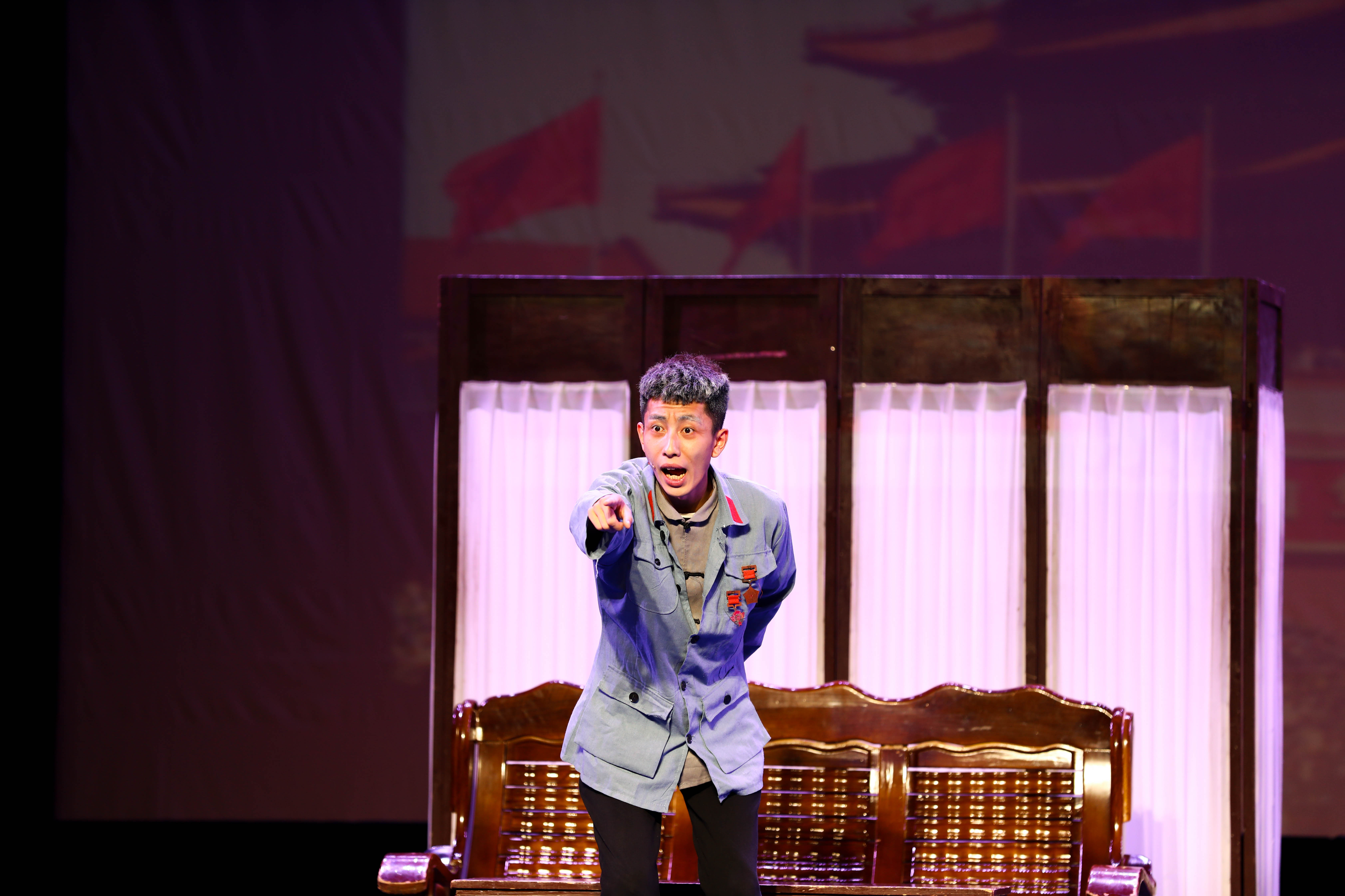 孙学增导演原创作品工作坊——江南红村采风•原创作品汇报《红色•青春》主题晚会,5月17日晚由浙江艺术职业学院戏剧系表演艺术专业学生在浙艺小剧场倾情上演。小品《双别》《七斤半面粉》《挑夫》《映山红》、情景表演《卫生队》《徐昌胜》等7个节目精彩呈现,把观众带到战火纷飞的抗战岁月,不忘初心,感人肺腑。此次演出是表演艺术专业师生们赴长兴革命老区采风后创作出的艺术成果。长兴县委宣传部副部长刘月琴、浙艺院长黄杭娟、院党委宣传教育处处长马向东、戏剧系党总支副书记李旭芳等观看演出。