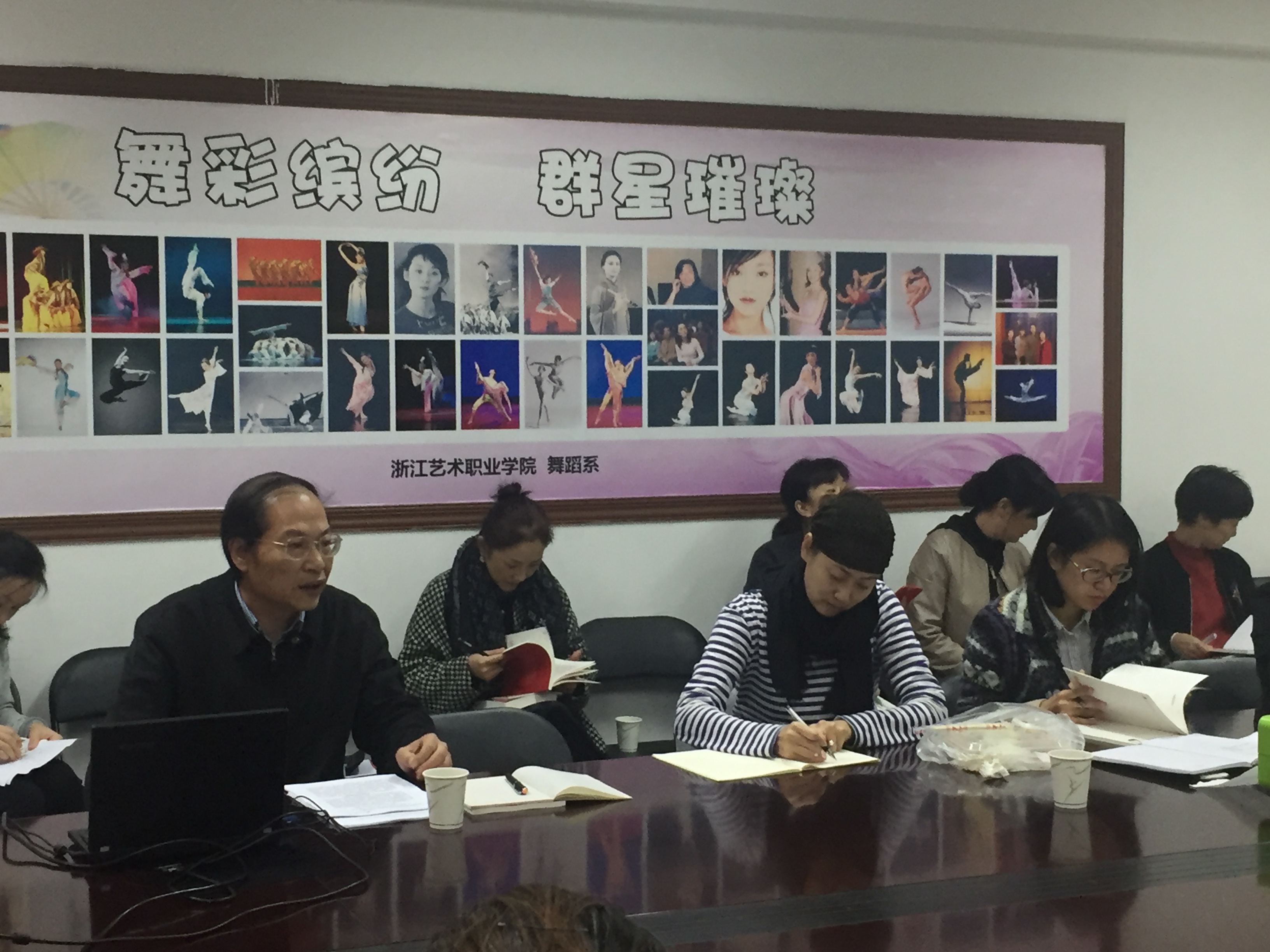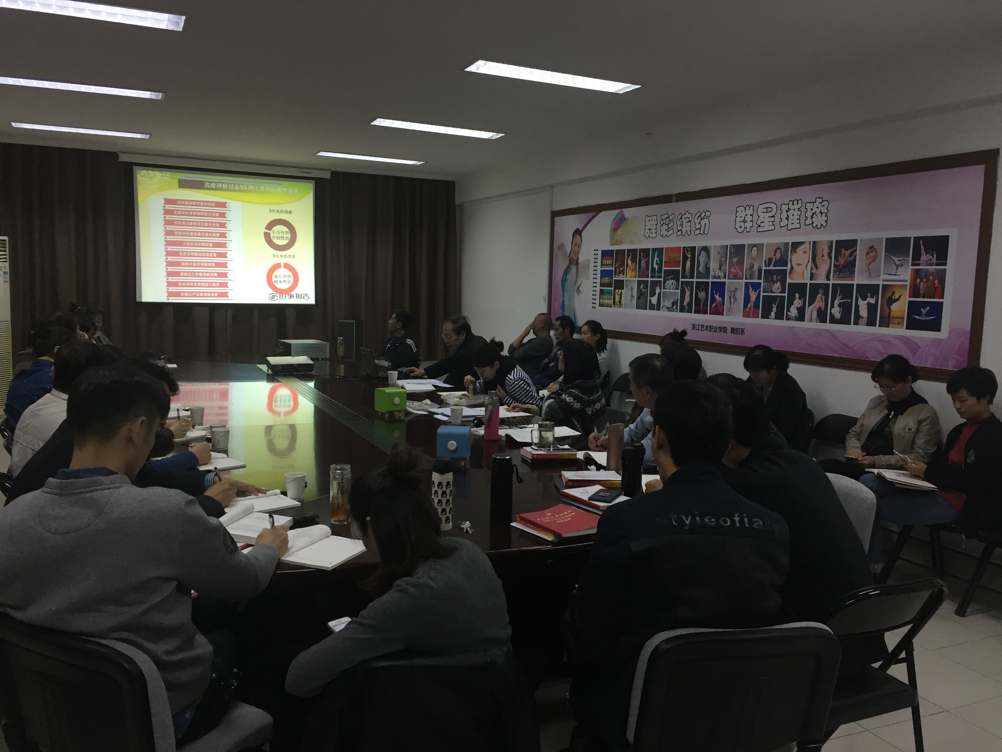 11月14日中午,院党委委员、副院长章轲前往舞蹈系4409会议室为舞蹈系全体教师解读党的十九大精神。