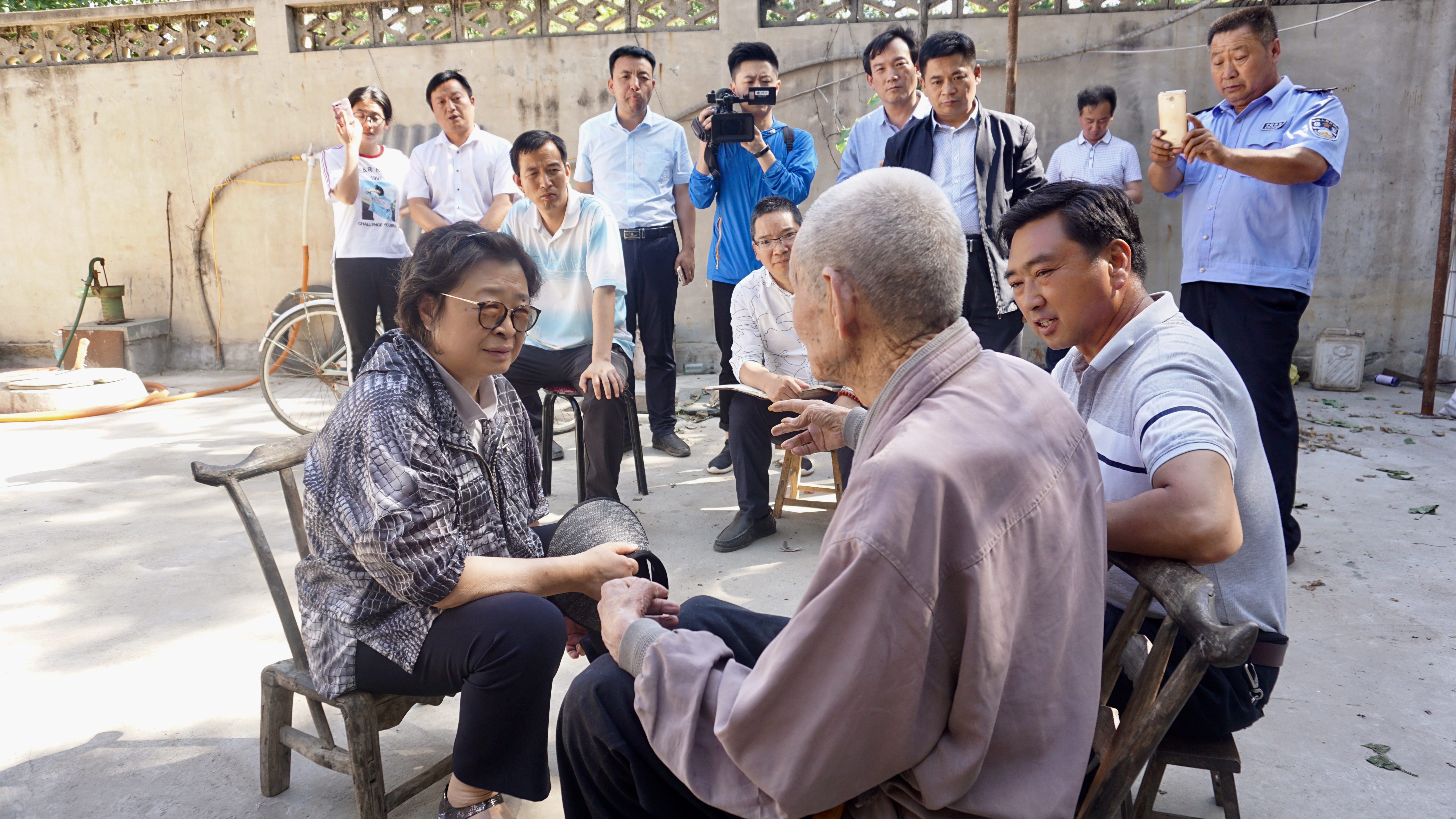 第二天,剧组人员一行来到陈庄战役发生地石家庄灵寿县采风。1939年9月,侵华日军团长水原义重苦心经营,实施所谓“山地讨伐的进步战术”。他命第31大队田中率军1500人,采取声东击西,避实就虚的轻装奔袭战术,一举深入晋察冀边区腹地,消灭我根据地的领导机关和后方设施,在日寇的“秋季大讨代”中建立奇功。在贺龙与聂荣臻指挥下,120师集中了6个团的兵力,将计就计,经过六天五夜周旋激战,全歼进犯日军1200余人,给予敌人迎头痛击,陈庄战役粉碎了敌人洋洋自得的“牛刀子战术”,是抗日战争相持阶段中敌后抗战一次模范歼灭战,也是贺龙元帅用兵布阵的杰作之一。主创团队在陈庄歼灭馆中看到了八路军当年作战使用的武器以及生活用品,与日军的武器装备形成了鲜明对比,让人不经感叹八路军的质朴艰苦。当地96岁的历史讲述人在提到当年驻扎在村里的八路军“不拿人民群众一针一线”的作风时,不禁连连感慨。纪念馆墙上挂着一幅幅触目惊心的日军侵华照片,让人真切感受到了战争的惨烈,更让人们对侵华暴行产生愤怒。在参观完陈庄歼灭战博物馆以及陈庄歼灭战纪念碑后,《走过硝烟》主创一行人对前辈奋勇杀敌、不畏艰险的精神,敬佩之情油然而生。在贺晓明带领下,大家走访了陈庄中原贺龙元帅的驻扎地,贺晓明大姐向当地老人表达了自己的关心与慰问,并向老人们深入了解当年在此发生的战争细节。真实而质朴的故事深深打动了在场听众们的心,也将成为创作过程中最接地气最能感动观众的一手素材。
