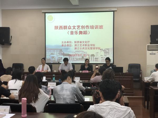 9月11日上午,陕西群众文艺创作培训班(音乐舞蹈)开班仪式在浙江艺术职业学院(浙江公共文化管理学院)举行。浙江艺术职业学院院长黄杭娟、陕西省文化厅副厅长李全虎等出席开班仪式。