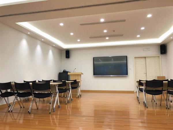 图书馆四楼为信息共享空间,分为数字媒体阅读区、学习阅读区、大小研讨室、视听欣赏室。整个区域采用先进的智能化IC空间管理系统,师生们可以通过移动端、PC端或现场预约机等任一方式实现空间预约。