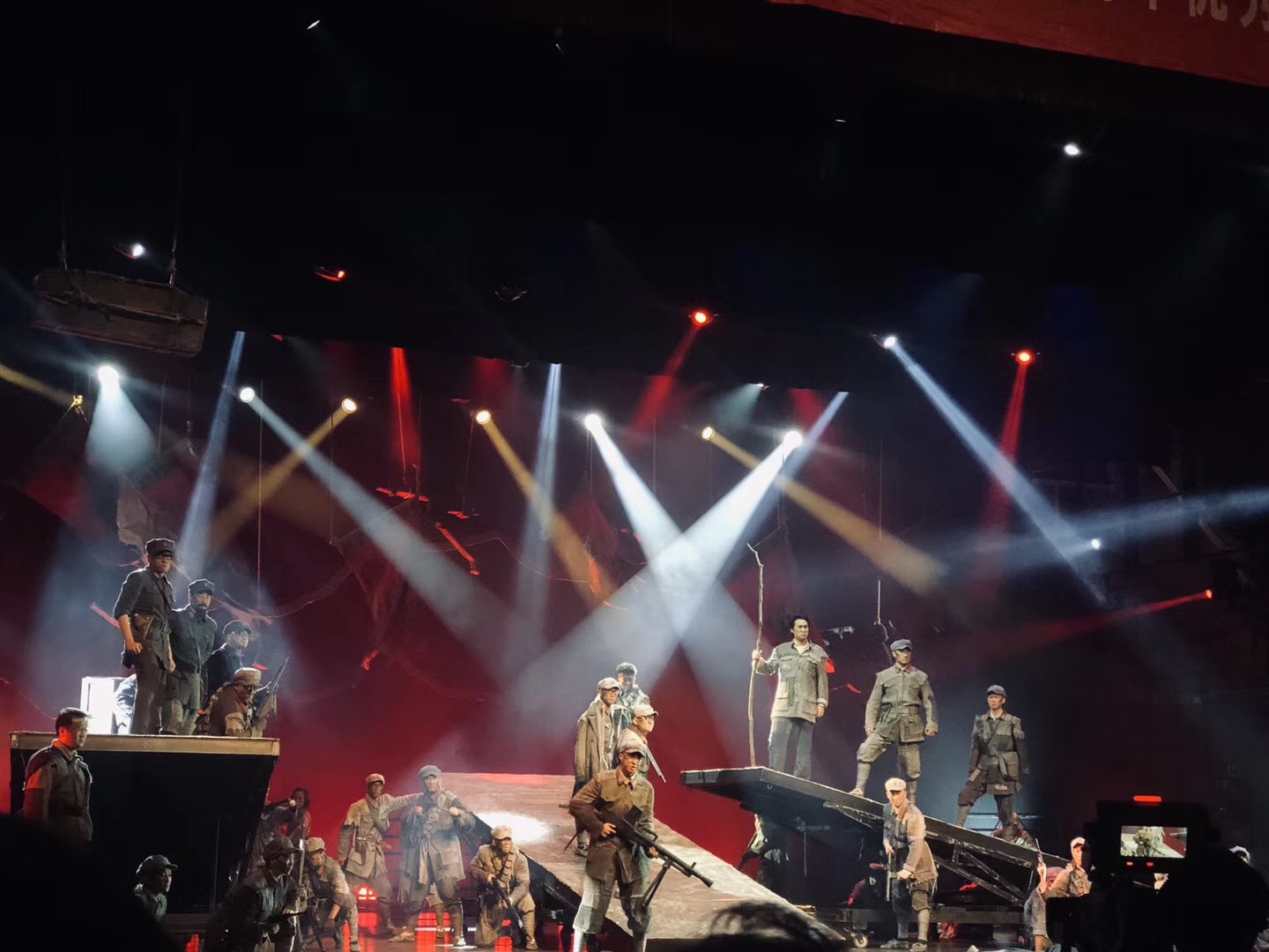 万里长征不仅给我们留下了渡湘江乌江、四渡赤水、强渡大渡河、过草地、翻雪山等一幅幅鲜活的历史画卷,更为我们留下了不朽的长征精神。《雄关漫道》的创排让我们对整个事件更有了画面感,特别到遵义会议时,经历了前面一次一次的失败、绝望,让我更加明白了这份成功来之不易。这戏很辛苦,推移平台摸爬滚打,也时不时有人带伤带病上场,长征精神是不畏艰难,不怕困苦,不怕流血牺牲的革命英雄主义精神。无论有多少艰难,我们都会以红军精神坦然面对。