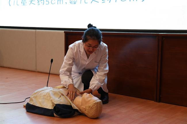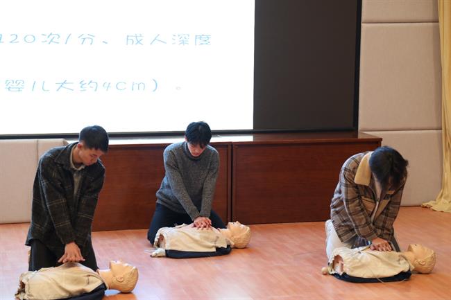 培训中,阙医生讲解了心脏骤停的原因、急救重点和方法,强调了现场救护技巧的重要性。为使师生们更深入地掌握急救要领,现场邀请师生上台进行手把手教学、一对一指导,在场师生无不听得聚精会神,练得热情高涨,现场互动,气氛热烈。美术系18广告班余文杰同学说:“以前也参加过这样的培训,但都没动手,转眼就忘了,这次让我有机会实际操作,学得实实在在,印象很深刻。”