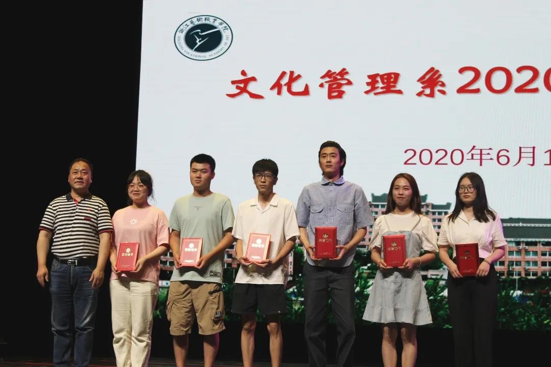 文化管理系班子成员分别为2019-2020学年综合展演季优秀学生、2020届优秀毕业论文、2020届院级优秀毕业生、省级优秀毕业生、国家奖学金获得者颁奖。