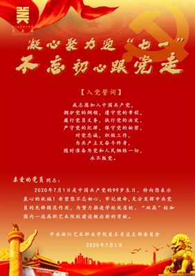 为纪念中国共产党成立99周年,继承和发扬党的光荣传统,进一步增强党组织组织力,激发党员荣誉感、责任感和使命感,引导激励美术系各党支部和广大党员在改革创新中锐意进取,在干事创业中担当作为,美术系党总支推出“凝心聚力迎’七一’,不忘初心跟党走”系列活动。