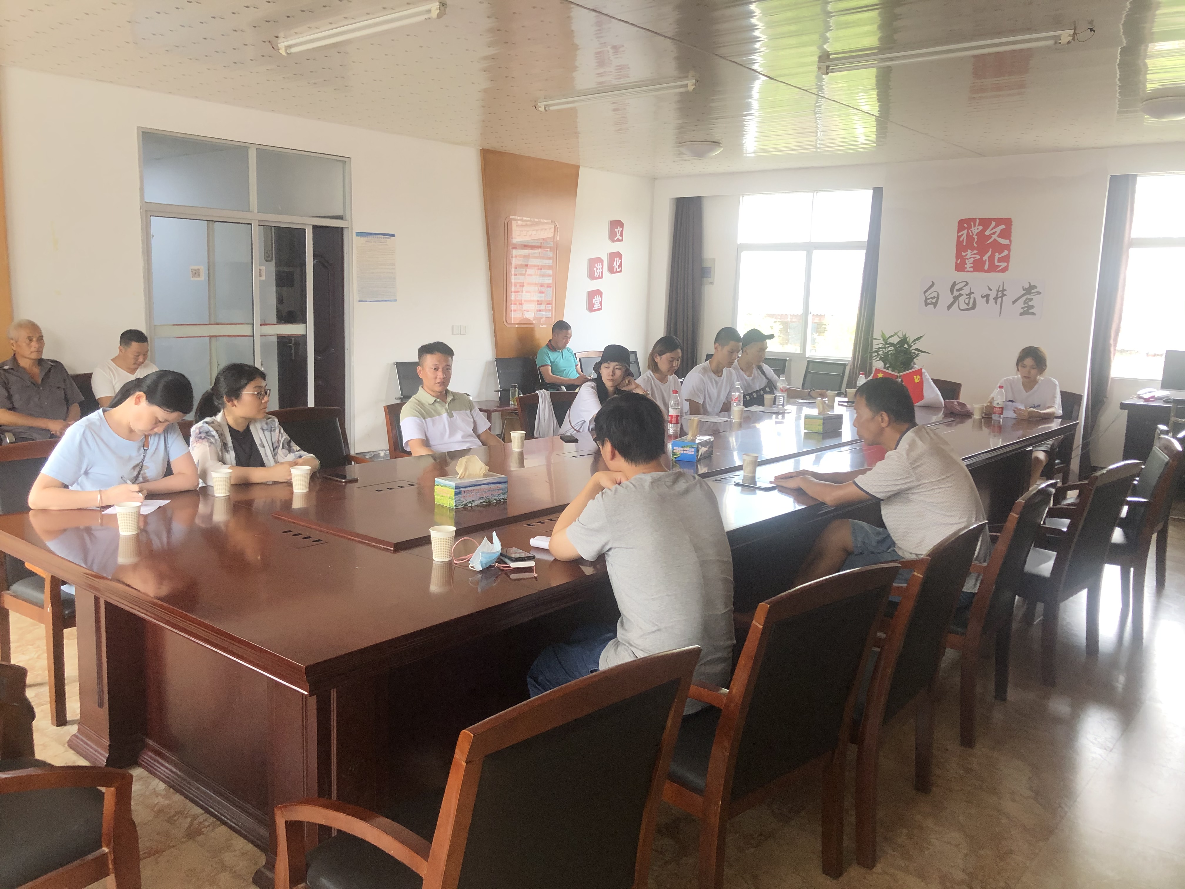 师生们到达仙居横溪镇,顾不上休息,马上组织开会讨论,与省文化和旅游厅派驻仙居县横溪镇垟庄村农村工作指导员颉顺虎了解直播村子的相关情况,查阅资料、明确直播流程、打磨脚本、细化分工。