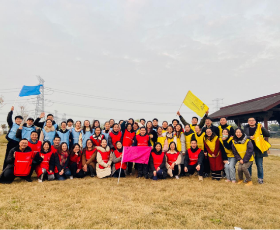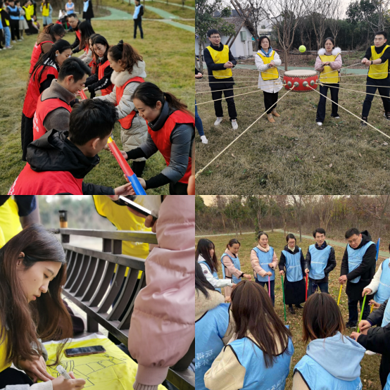培训结束后,新进教师和教学管理人员们在德清县Wonderful.Park素拓基地进行素质拓展活动,老师们分为三队进行团队竞赛,经过确定队名、团队口号、队歌、制作队旗环节后,大家进行了团队磨合,在此过程中,老师们完成了真正意义上的“破冰”。各支队伍进行了“激情五分钟”的展示活动,展示了各自的团结和智慧。