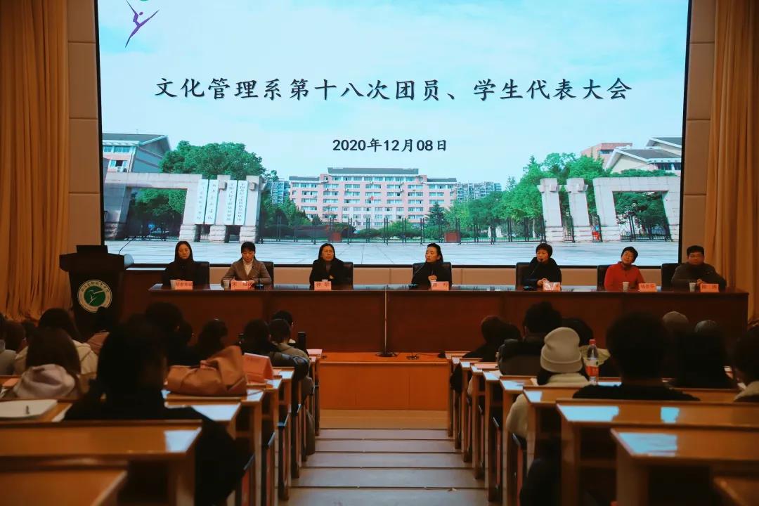 12月8日晚,文化管理系第十八次团员、学生代表大会在校图信中心报告厅举行。校党委学工部副部长、团委书记郑吟、文化管理系党总支书记金银琴和文化管理系学生思政线教师出席本次大会。大会由文化管理系团总支书记宋煜主持,全系110名团员、学生代表参加会议。