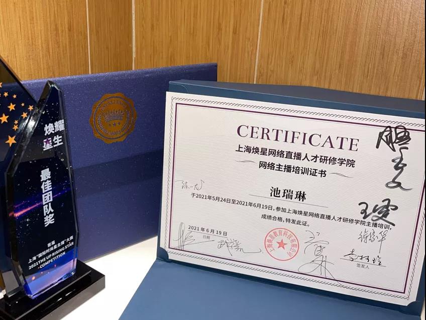 6月19日晚,由上海市长宁区人民政府指导,长宁区商务委会、上海市直播电商联盟、上海焕星网络直播人才研修学院主办的首届上海“国际时尚星主播”大赛总决赛颁奖仪式在上海世贸商城举行。经评选,我校作为本次大赛的支持单位荣膺"最佳组织奖"。模特与礼仪专业学生余升、池瑞林荣获"最佳团队奖"。