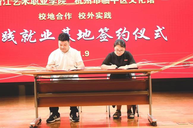接下来,我校与临平区文化馆将携手共建校地文化,共同打造集实践教学、顶岗实习、产学互动、人才输送、文化服务五位一体的实践就业基地,为学生提供广阔的舞台,为公共文化服务做出贡献。