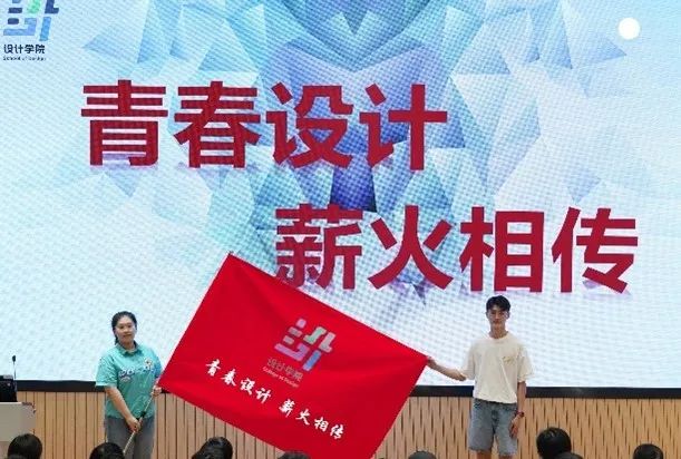 校友联络人代表、“浙江省优秀毕业生”19动漫班胡凯欣发言。她表示在今后的工作和生活中一定牢记母校的谆谆教诲,以实际行动发扬浙艺精神,讲好浙艺故事。毕业生代表、“浙江省优秀毕业生”19舞美班单士通向在校生代表传递红色旗帜。