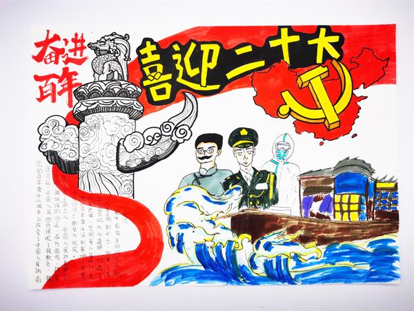 为进一步丰富青少年的校园文化生活,坚守立德树人,牢记为党育人、为国育才的历史使命和责任担当,不断拓宽青少年爱国主义教育载体,引导广大青少年赓续党的红色血脉,坚定理想信念,成为新时代新征途上的先锋力量,浙艺中专学子开展“争做时代新人 喜迎二十大”主题手抄报评比活动,经过近两个月的初评、复评,最终在44幅作品中评选出10幅优秀作品,展示了浙艺中专学子朝气蓬勃的爱国主义情怀和积极向上的精神风貌。