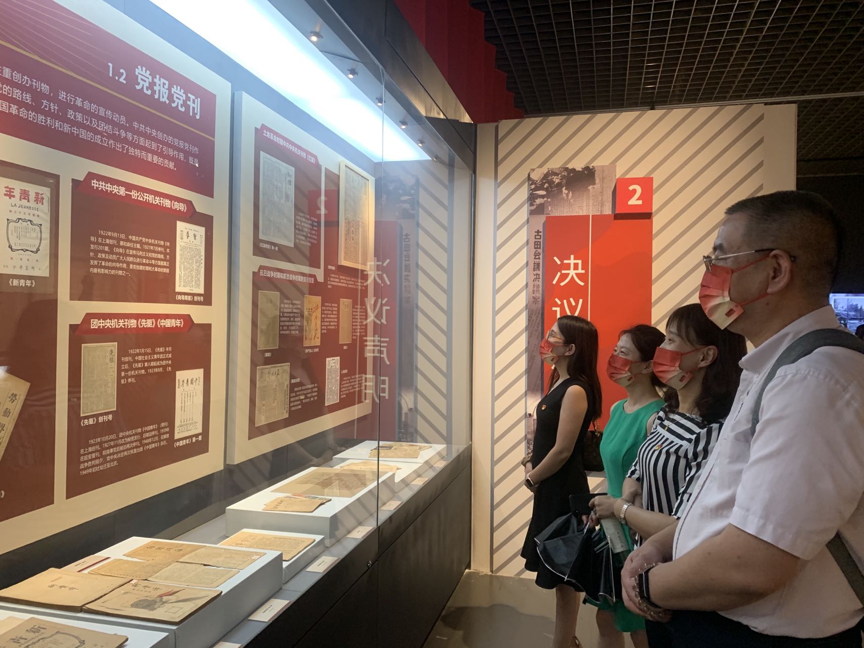 通过中共中央第一份公开机关刊物《向导》周报、土地革命时期中共中央机关刊物《红旗》、具有鲜明时代特色的苏中出版社出版的《毛泽东选集》第一卷等重要文献资料,以及革命年代的党旗、抗日战争时期浙江省第一次代表大会使用的桌子和会议决议,甚至将军农民甘祖昌认真学习过的《毛泽东选集》和他使用的锄头,全体党员从中切身感受到了信仰的力量,并且更加证明了:“没有中国共产党,就没有新中国,就没有中华民族伟大复兴。历史和人民选择了中国共产党!”