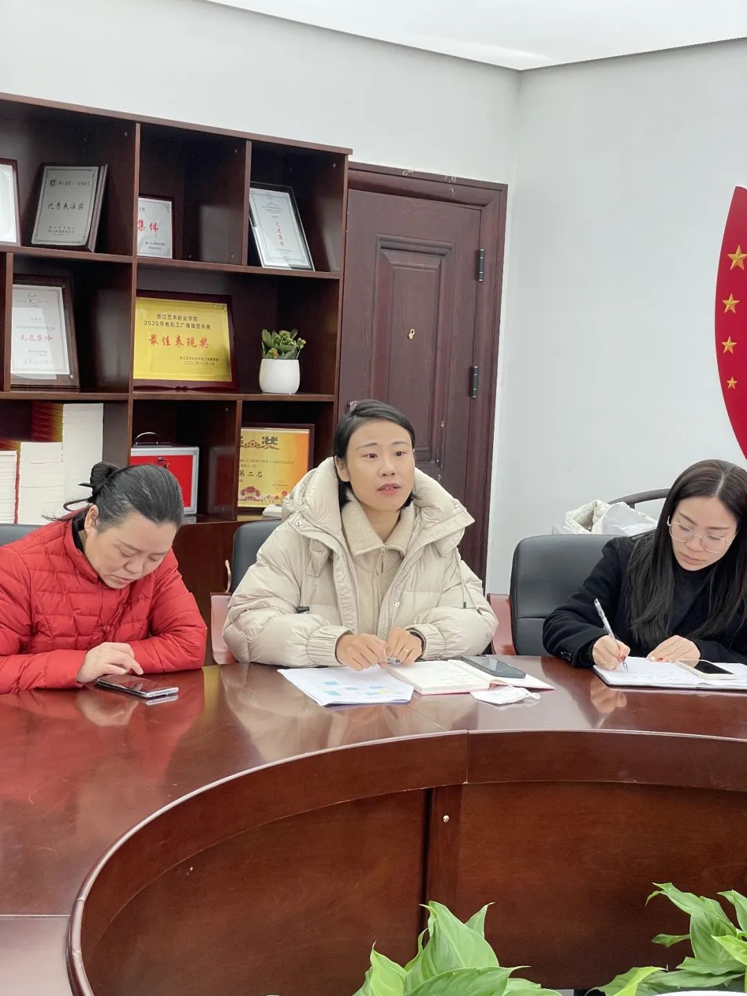会议开始前,校党委书记薛亮,党委委员、纪委书记徐芳,党委委员、副院长沈军甫和办公室主任刘秀峰一行前来走访慰问,勉励大家立足岗位、创新奉献,为学院发展再立新功。