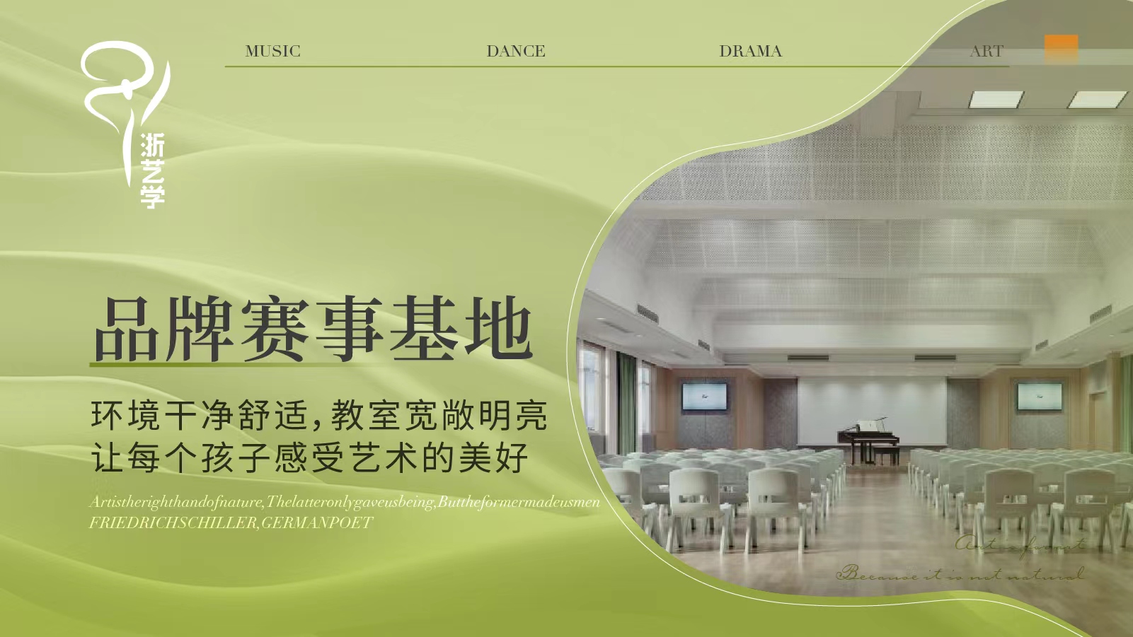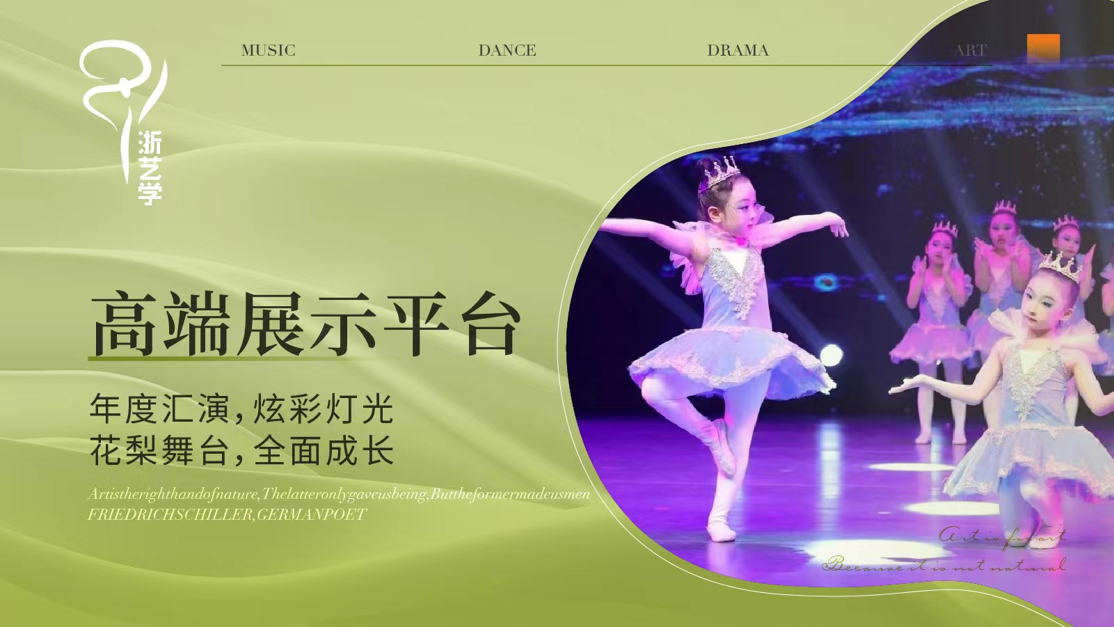 浙艺学艺术培训中心依托股东方浙江艺术职业学院的专业教学质量管理和浙勤集团企业运营管理等方面的经验,强强联合,以培育真善美的复合型艺术人才为目标,现已开设音乐(声乐、器乐、奥尔夫音乐、音乐素养等)、舞蹈(中国舞、街舞)、口才、戏剧、美术、书法、陶艺等青少年艺术素养课程,并将持续深耕文化艺术培训的发展创新,积极培育新一代浙江文艺新星。