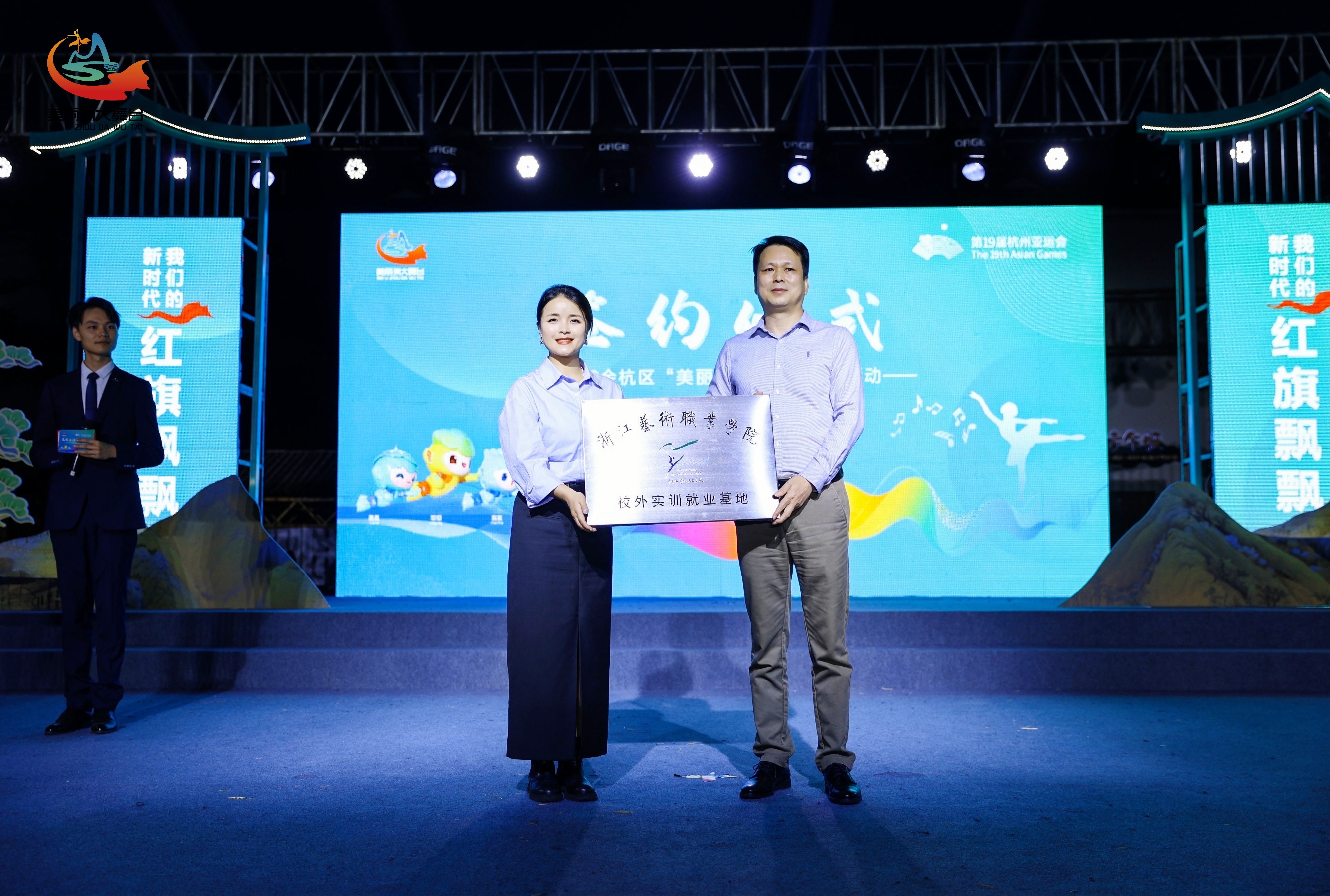 活动现场,浙江艺术职业学院还与余杭区文化馆签署了校地战略合作协议,学校产学合作处处长屠灵华和余杭区文化馆馆长朱丽君上台举行了合作授牌仪式。期待未来能够实现校地协同发展、合作共赢,助推校地“产、学、研、创”融合发展,不断拓展合作领域、合作深度、合作广度,切实聚焦校地联合,把高校艺术教育优势与地方事业单位资源优势转化为合作共赢的丰硕成果。