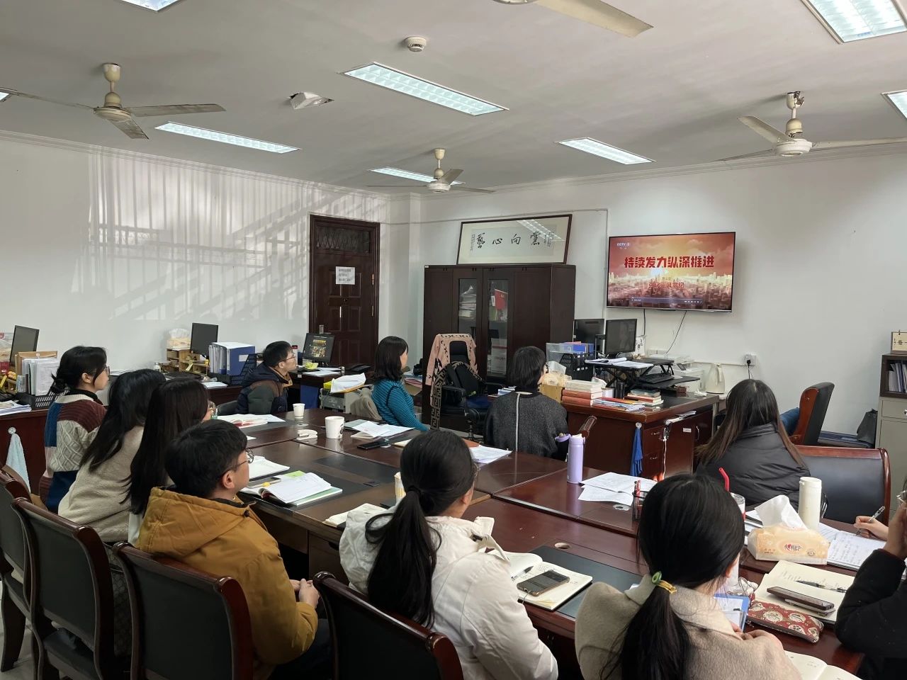 1月17日下午,马克思主义学院直属党支部开展理论学习中心组扩大学习会暨师德师风专题党课。直属党支部书记、院长王筱芽传达学习领会习近平在二十届中央纪委三次全会上发表重要讲话精神、新修订的《中国共产党纪律处分条例》,并集中观看由中央纪委国家监委宣传部与中央广播电视总台央视联合摄制的年度反腐大片《持续发力 纵深推进》。